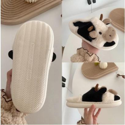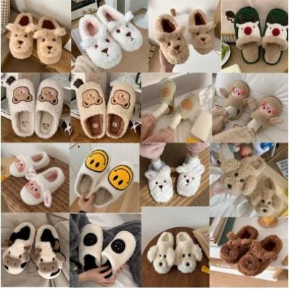 【24.5-25cm】女性用 もこもこ スリッパ,冬の靴,暖かい フラット,かわいい 動物 【11~15】