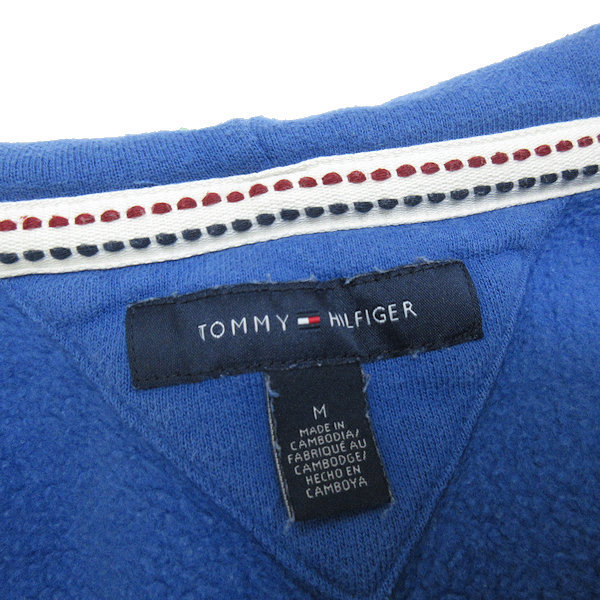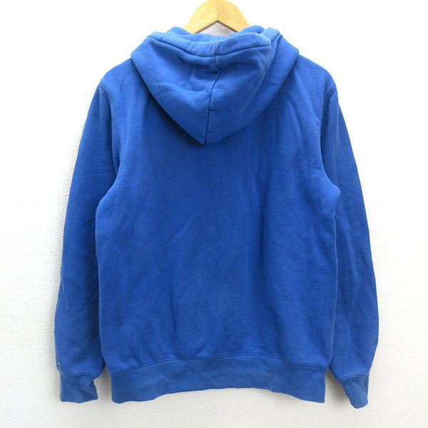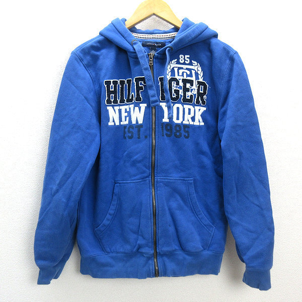 s■トミーヒルフィガー/TOMMY HILFIGER 文字刺繍 フーディパーカー/スウェット地【M】青/MENS/88【中古】
