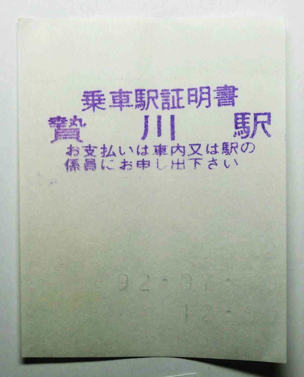 E59204 JR東海 乗車駅証明書 贄川駅 にえかわ 1992.7.30