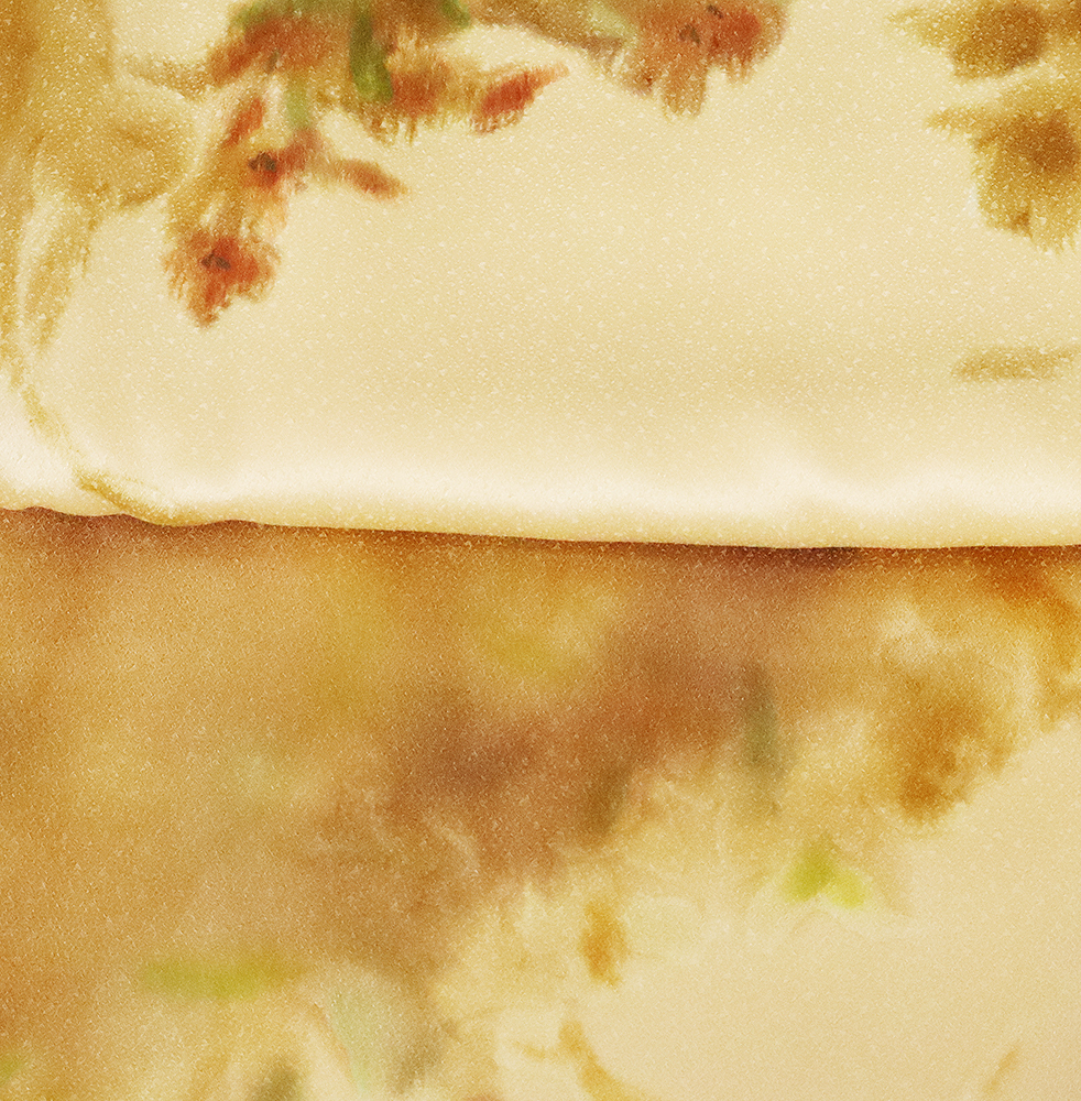 | 色・柄 | 訪問着 袷 丹後縮緬 綸子生地 オレンジしぼ綸子地 ローケツ花柄 (写真では上手く色が出ない場合があります。ご了承下さい) |