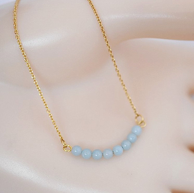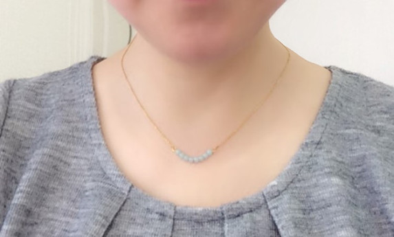 ●金属素材:ステンレス、18KGF。●ストーン素材:アマゾナイト、直径約3mm、ロシア産。●※天然石ですので画像と若干異なる場合がございます。●サイズ:長さ40cm、アジャスター3.5cm、全長約43.5cm、太さ約1mm。