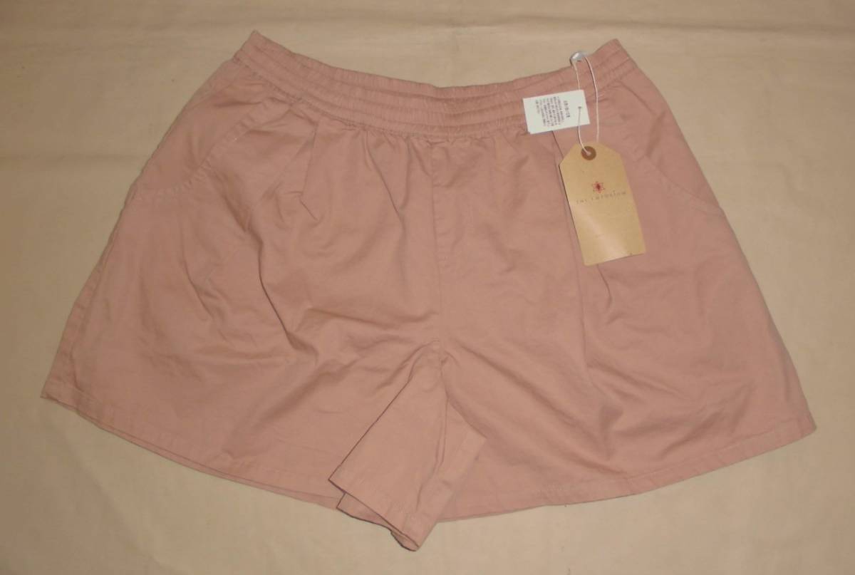 履き心地抜群のコットン100%ショートパンツです。ワールド商品で物はしっかりしています。ウエストゴムのイージータイプ。ベージュカーキ系のオシャレカラー。サイズはM表示でウエスト幅36cm総丈37cm裾幅40cmぐらいの実寸です。定価は¥2990です。ゆうパケット便で宜しければ送料無料。