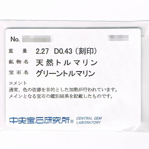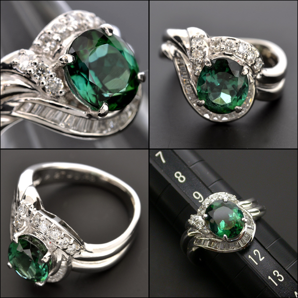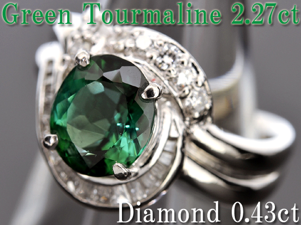 K【BSJJ】Pt900 グリーントルマリン2.27ct ダイヤ0.43ct リング | ||||