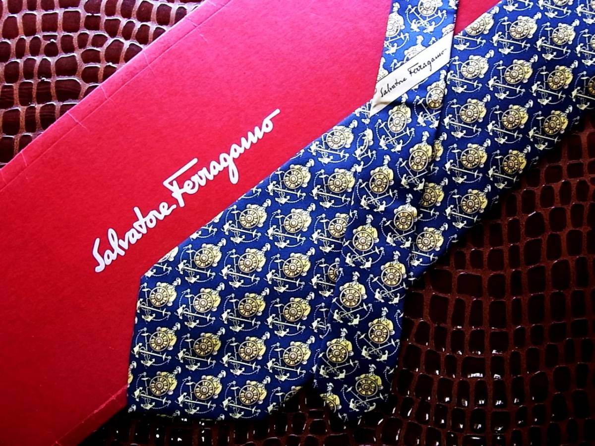 ■E480R●良品●【船・船長・舵】フェラガモのネクタイ