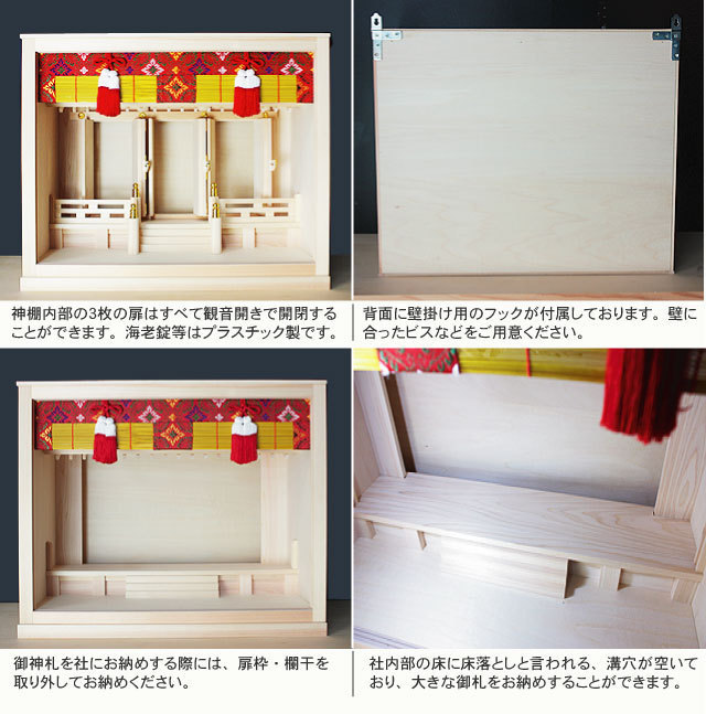 古(いにしえ)より、神は桧に宿ると言われています。 御神札は扉枠を外してお納めするため簡単にお納めできます。