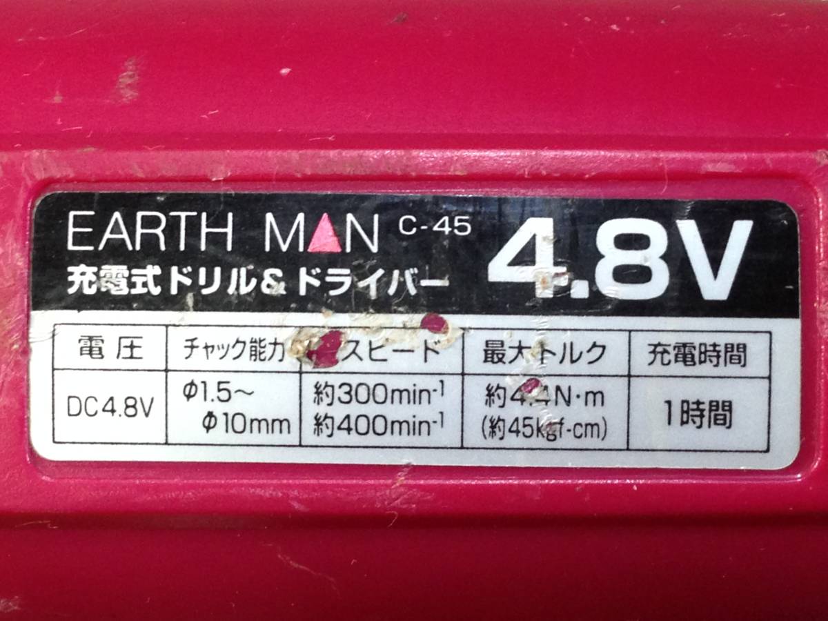 ス200 アースマン 充電式 ドリルドライバ C-45 4.8V 動作未確認