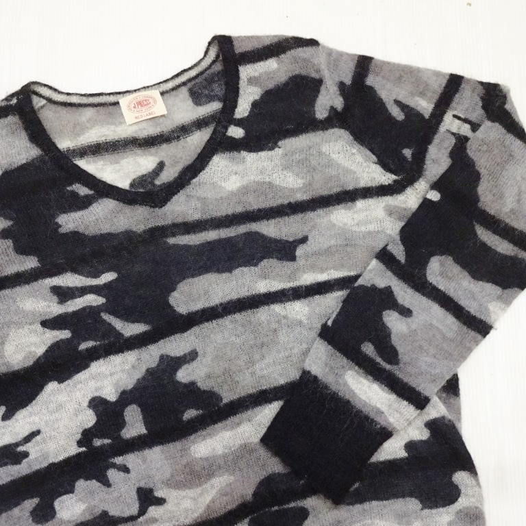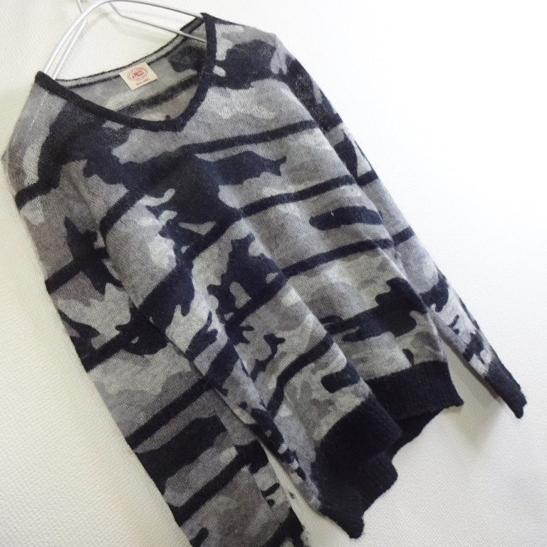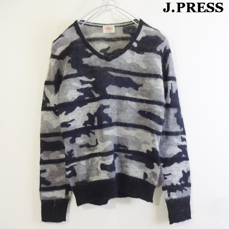 即決★ 送料無★ J.PRESS モヘアブレンド 薄手ニット 【M】 カモフラ グレー レディース オンワード樫山 ジェイプレス E343
