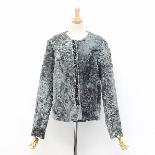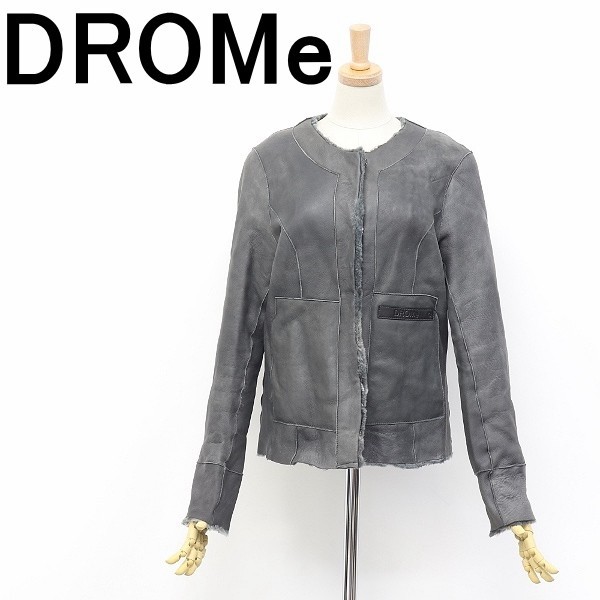 ◆Drome/ドローム リバーシブル ムートン ノーカラー ジャケット ショート コート グレー系 S | |