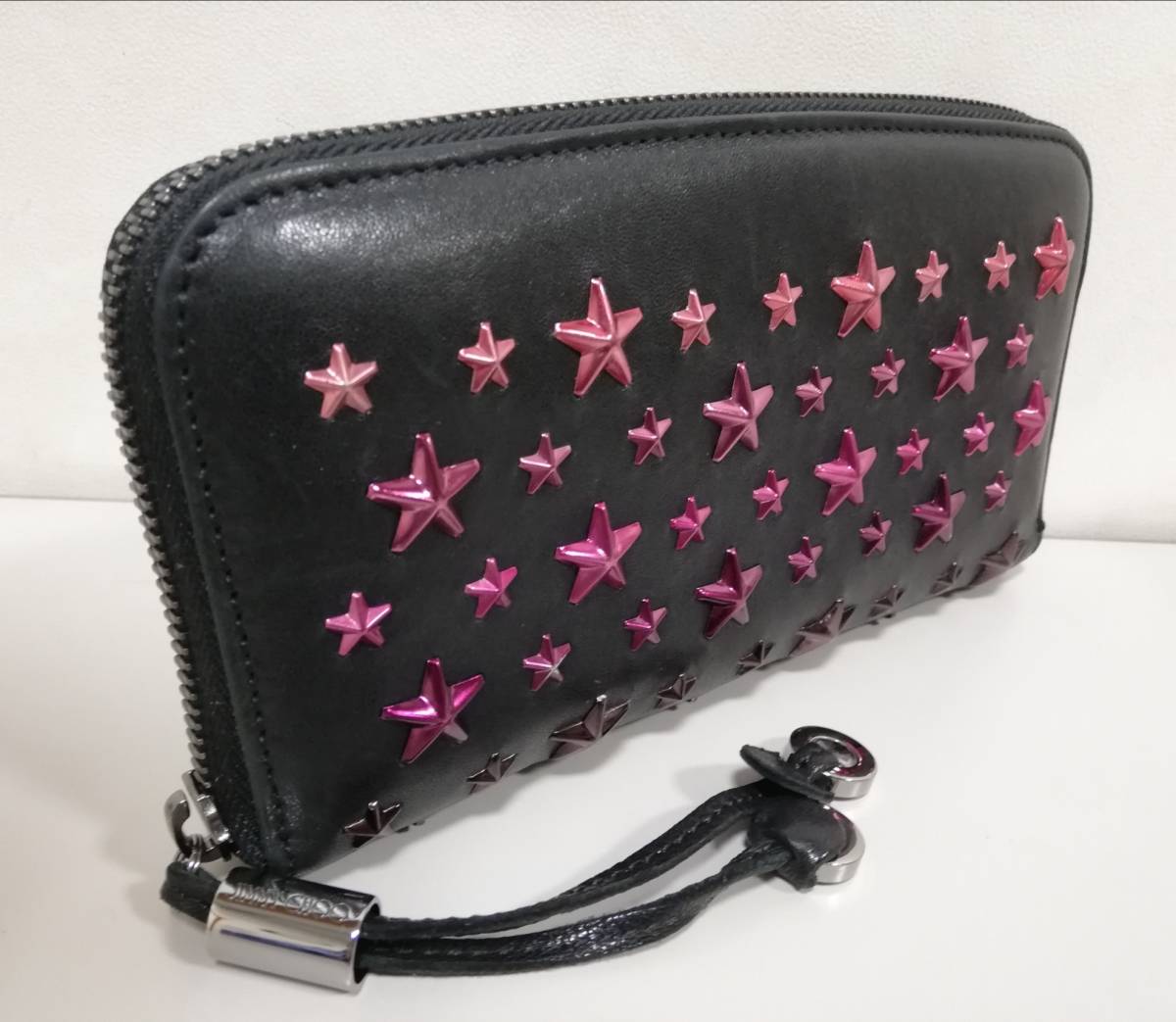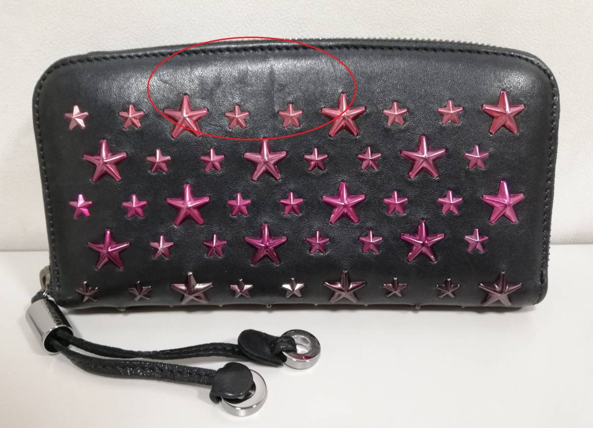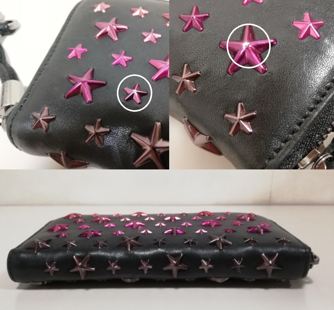ジミーチュウのスタースタッズ、ラウンドファスナー長財布になります。
