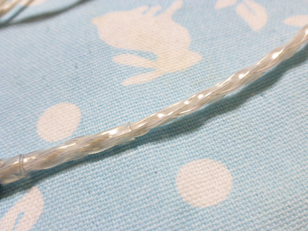 上側は4芯ツイスト、下側は2重ツイスト構造、プラグ根元部位は「ブレイド編み込み」仕上げです。