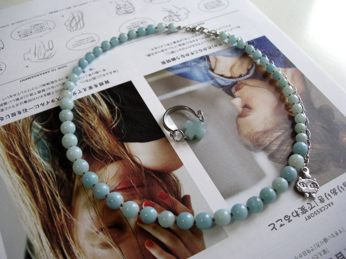 愛らしさの条件・・シリーズです♪モードな水色に惹かれて・・可憐なアマゾナイトのシリーズです♪ネックレスとリングの2本セットです♪6ミリと8 ミ リの丸玉のアマゾナイトは合わせやすいシンプルなデザインです♪ネックレスの長さは42センチ+アジャスター15センチで最長57センチ位です♪12ミリのクロスのアマゾナイトのリングはフリーサイズです♪シンプルで飽きのこないいつまでも着けられるデザインを考 えて作りました!単品やお揃いのシリーズも出品しています♪ハンドメイドをご理解頂いてノークレーム、ノーリターンでお願いします
