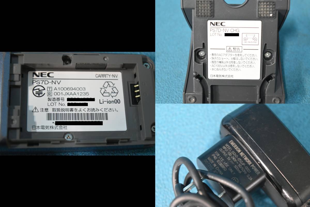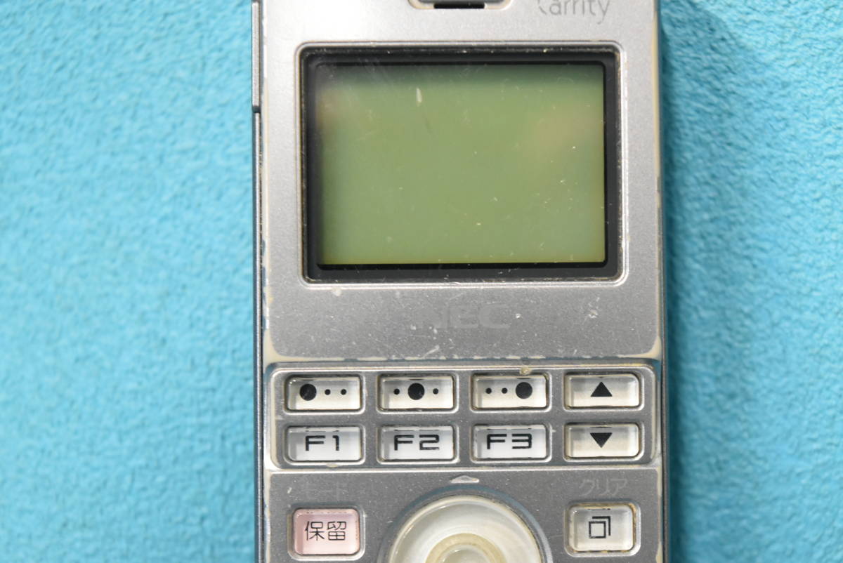 ■メーカー : NEC/日本電気 ■商品名 : マルチゾーンデジタルコードレス電話機 ■型番 : Carrity-NV 【PS7D-NV】 ■付属品 ・充電器【PS7D-NV CHG】 ・ACアダプター【DCH3-050JP-0001】 ※写真に写っている物で全てです。 ■対応主装置 ・Aspire UX 【IP5D-3KSU-B1 等】 ・Aspire X 【IP3D-3KSU-B1 等】 ・Aspire M 【IP1D-8KSU-A1】 ・Aspire S 【IP1D-KSU-S1】 ※下記のアンテナとユニットで構成を組みます ○アンテナ: IP1D-CS-D ○ユニット ・AspireM: IP1D-2CSIU-A1、IP1D-4CSIU-A1、IP1D-8CSIU-A1 ・AspireS: IP1D-2CSIU-S1、IP1D-2CSIDB-S1 ・AspireX: IP3WW-2CSIU-A1、IP3WW-4CSIU-A1 ・AspireUX: IP5WW-2CSIU-A1、IP5WW-4CSIU-A1 ※他の主装置でも対応可能な物がある可能性がございます。 詳しくは直接メーカーなどにお問い合わせください。 ■主な特徴/仕様 ◎「Carrity-NV」は、優れた操作性と快適な通話性能を備えたデジタルコードレス端末です。簡単なキー操作と豊富な機能でビジネスの効率をアップさせ、移動中でも通話はスムーズに。社内ではワイヤレス内線電話として、社外ではPHSとして、いつも身近に持ち歩いて便利にお使いいただけます。 ◎メーカー希望小売価格 35,500円(税別) ○Carrity-NV PS7D-NVは『8ボタン』タイプのコードレス電話機です ※但し、ボタンに外線は割付できません ○Carrity-NV PS7D-NVは『マルチゾーン』タイプのコードレス電話機です ○複数のアンテナを利用でき、ハンドオーバーも可能 ○CarrityNS PS5C-NS DX2D-6CPS-E、IP1D-8PS、IP3D-8PS、IP3D-8PS-2 は混在利用可能 ■商品状態・動作確認事項 ●簡単な動作確認 ⇒ 一部NG。(下記参照) ・画面確認NG。(バックライトはOK) ※ドット抜けがあります。画像にてご確認の上、御判断ください。 ・各ボタン確認OK。 ・各ボタンライト確認OK。 ・音(スピーカー)確認OK。(着信音の設定などにて確認しました。) ・マイク確認OK。(通話録音機能にて音声が録音できるのを確認しました) ・上部ランプ確認OK。 ・バッテリー充電確認OK。 メモリがない(または1個)の状態から3個(フル)の状態に表示されるのを確認しました。 但し、バッテリーの状態は不明です。写真にてご確認の上、ご判断ください。 ※専門知識・動作環境が無い為、簡単な動作確認のみとなります。 上記以外の動作確認はしておりませんので、消耗品(バッテリーなど)や不備がある部分、動作確認を行っていない部分につきましてはノークレームにてお願い致します。 ■管理番号: M-534 ※当方の管理番号となります。 商品内容とは関連はございません。 |