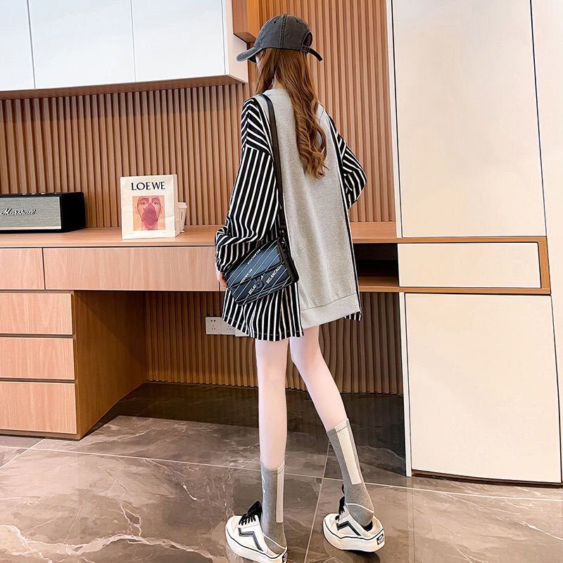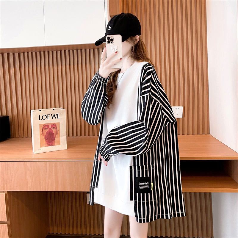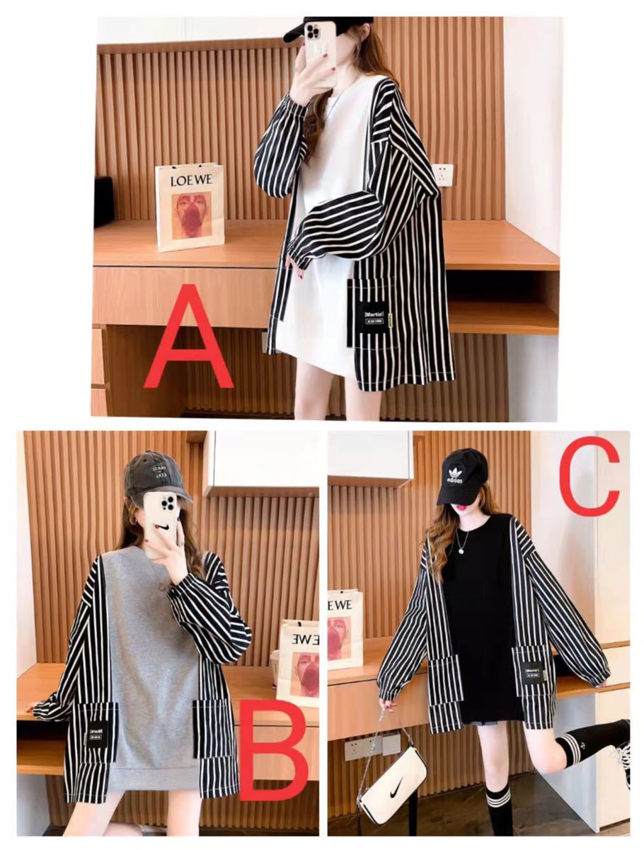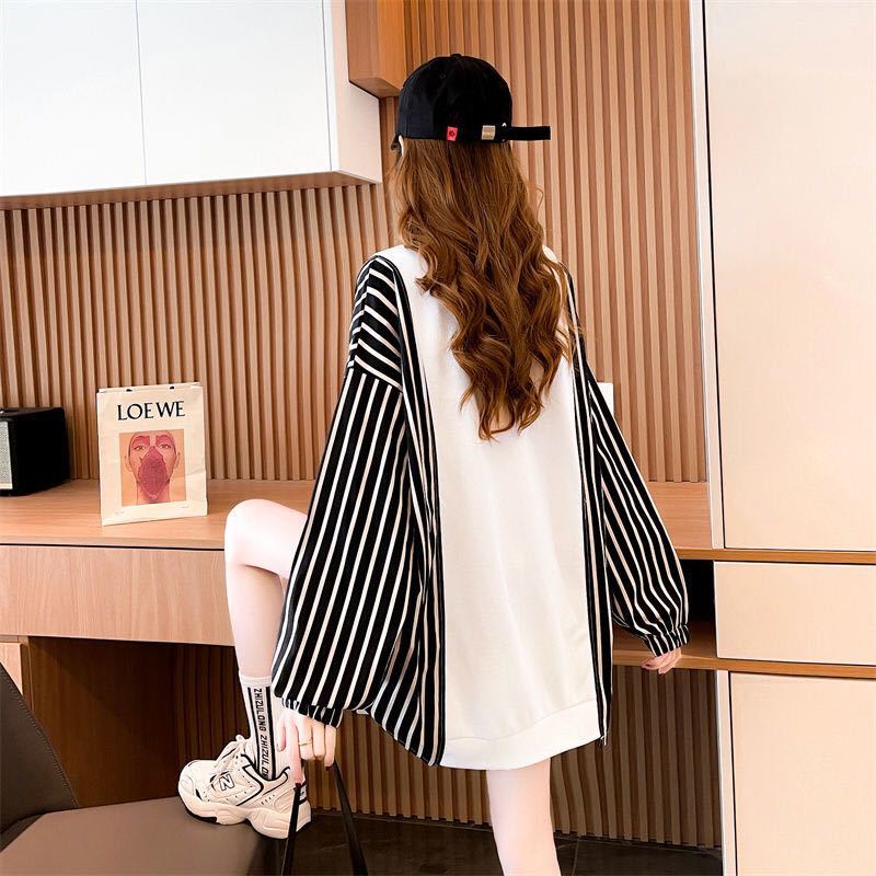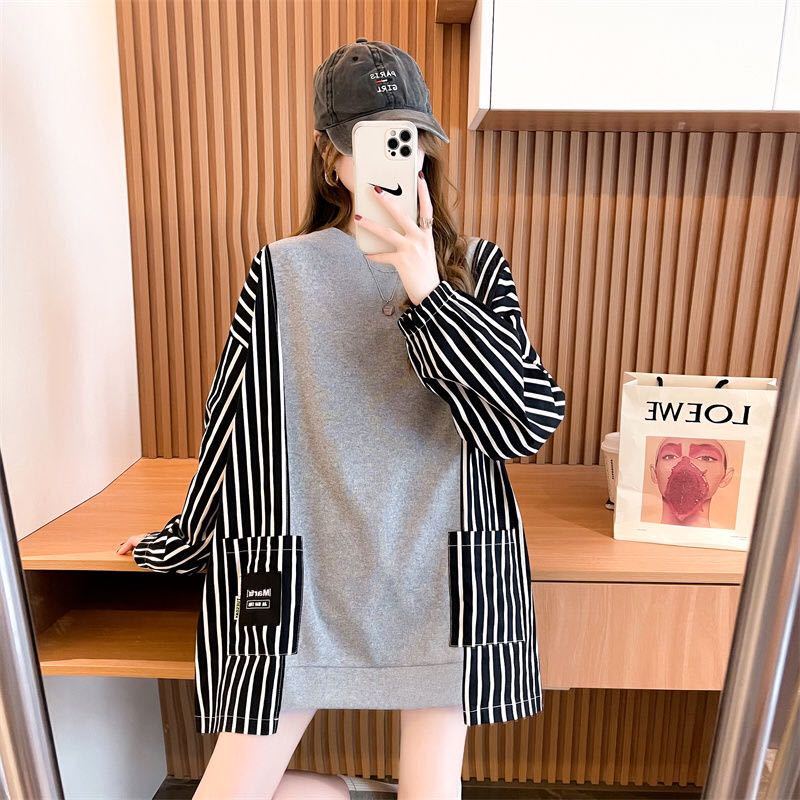 トレーナー トップス 切り替え 薄手 ストレイプ柄 体型カバー カジュアル 春秋 レディース ゆったり LUCA284(3色M-2XL)