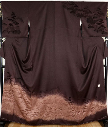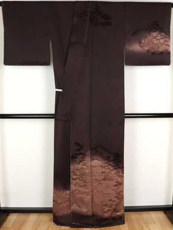 | 色・柄 | 訪問着 袷 丹後縮緬地 濃茶・小豆色ぼかし地ビロード刺繍清水寺 (写真では上手く色が出ない場合があります。ご了承下さい) |