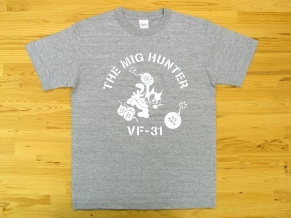 THE MIG HUNTER 杢グレー 5.6oz 半袖Tシャツ 白 S ミリタリー トムキャット VFA-31 U.S. NAVY VF-31