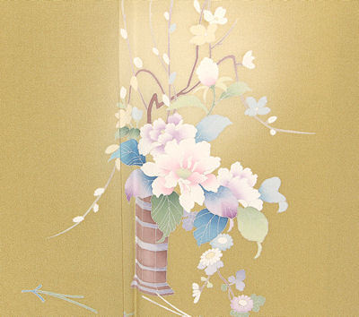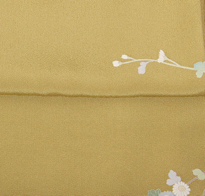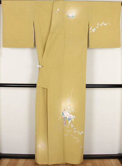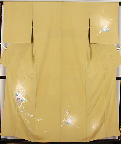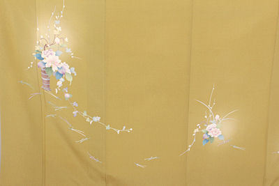 | 色・柄 | 友禅訪問着 袷 丹後縮緬地 辛子色ぼかし地四季花 (写真では上手く色が出ない場合があります。ご了承下さい) |