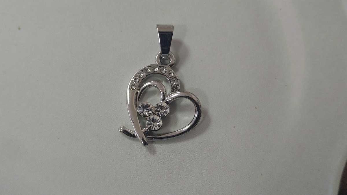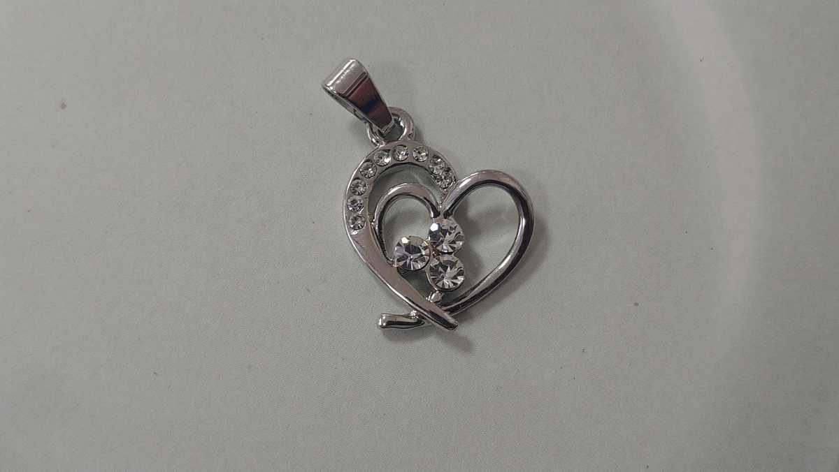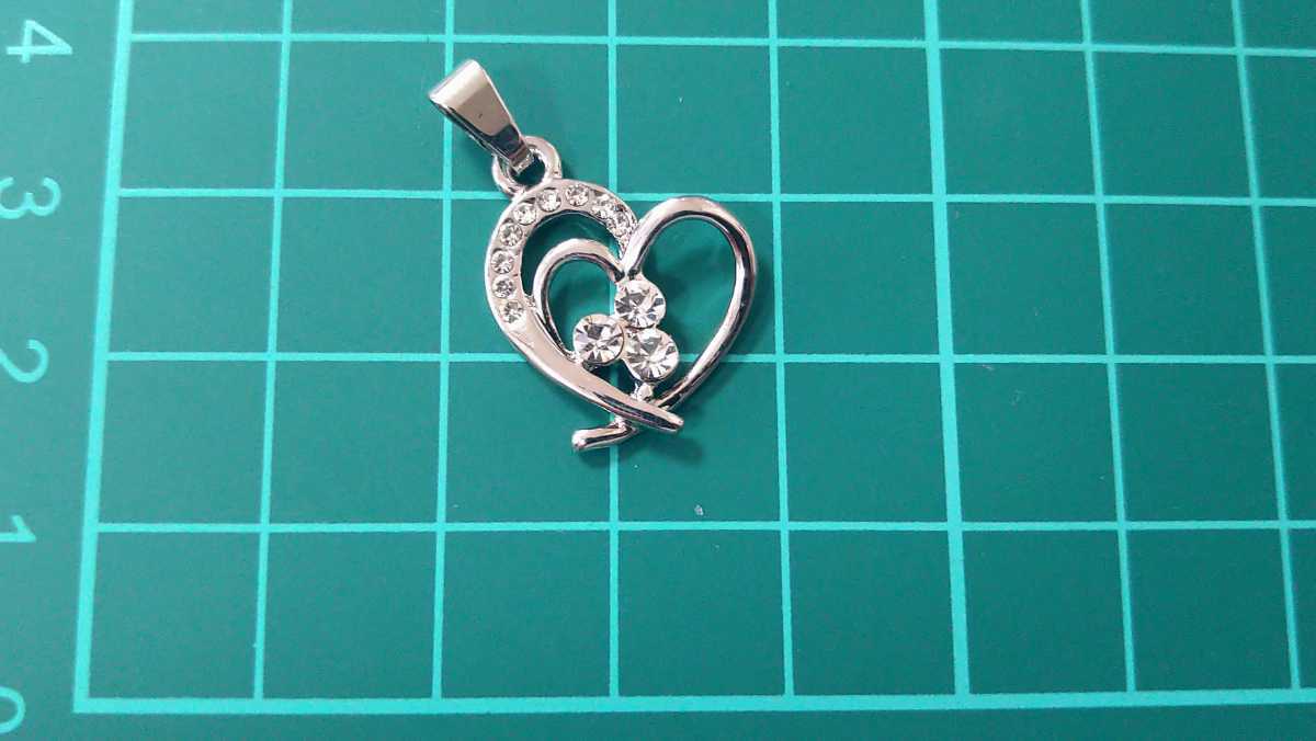 シルバーカラーハート×ラインストーンのペンダントトップです