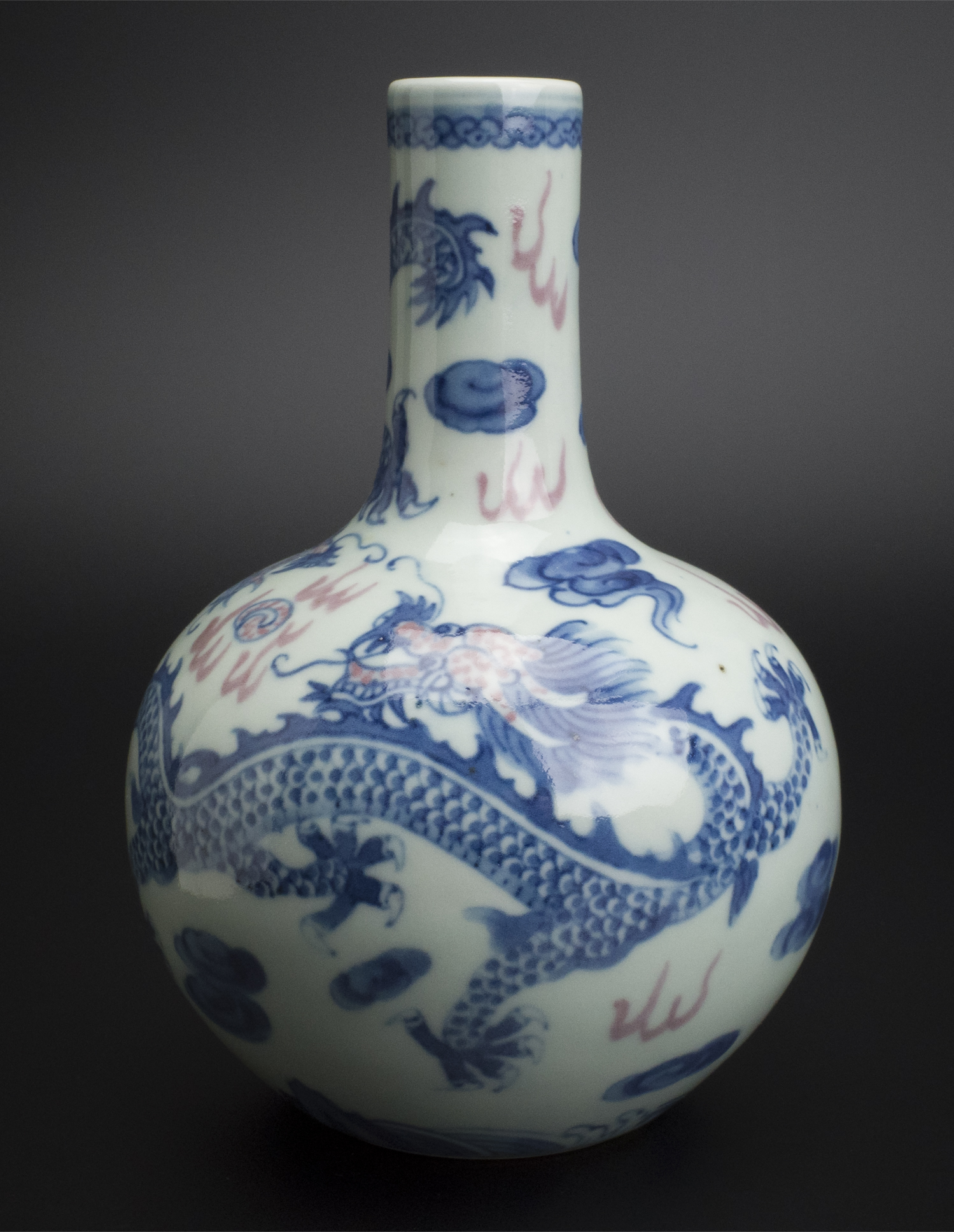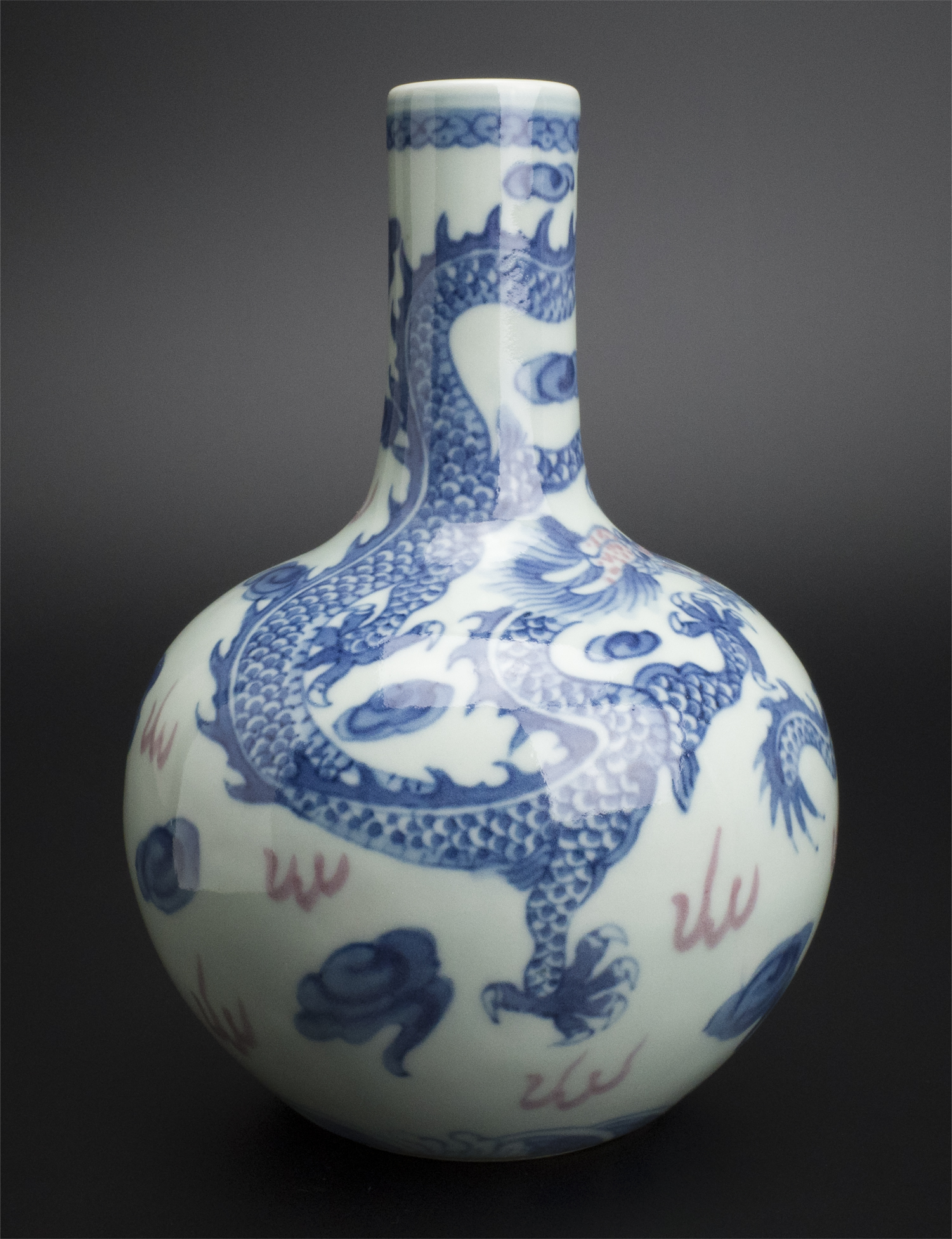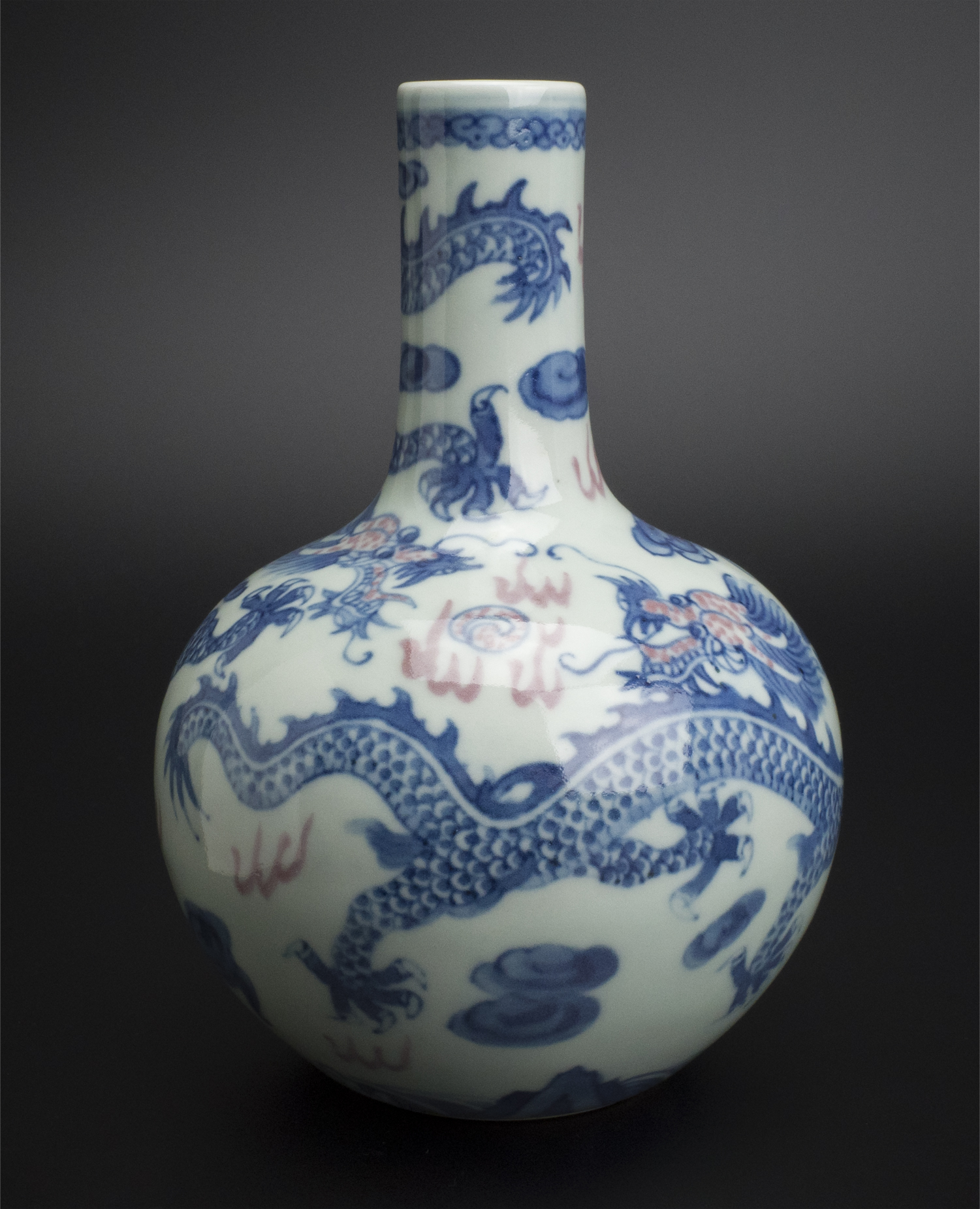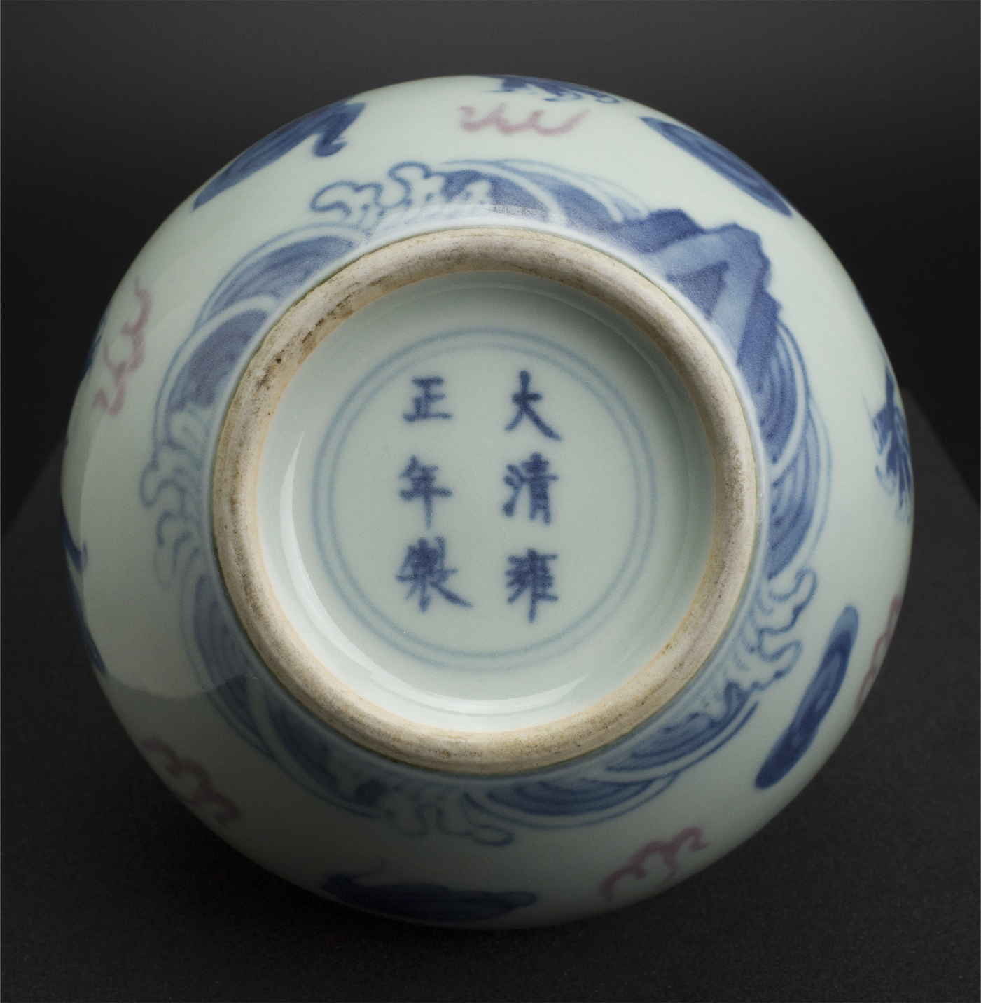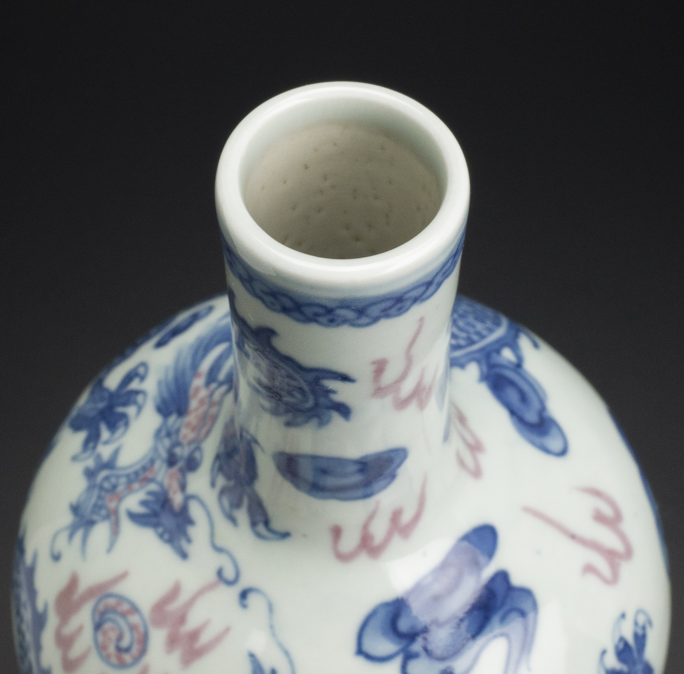 清 青花釉裏紅龍紋瓶 大清雍正年制款 中国 古美術