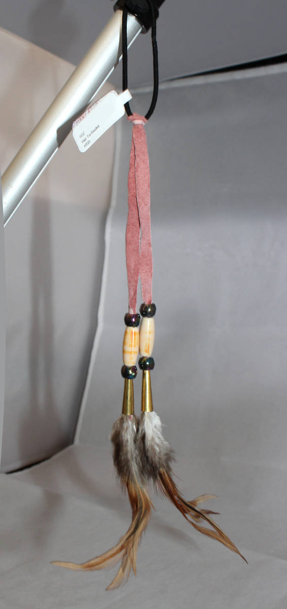 - 素材: ゴム、スエードレザー(ピンク)、天然フェザー、鹿の角、ビーズ