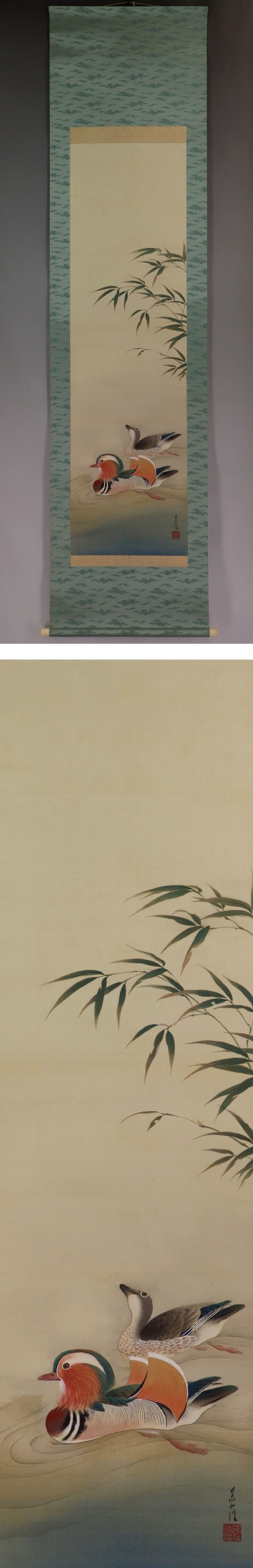 | №2112045 名品【真作】斎藤紫山【鴛鴦】◆絹本◆共箱◆掛軸 | |