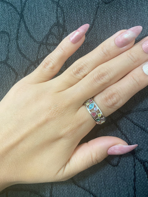 可愛すぎるトロピカルなカラフルなスワロフスキーをランダムに引き詰めた豪華なリングでございます。