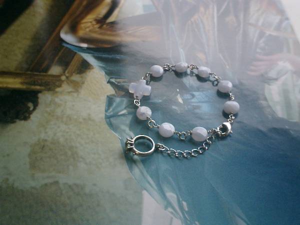 ガールズ・ファッションシリーズです♪物憂げな水色の・・ブルーレースのブレスレットです♪キュートで繊細な表情です♪7ミリのコインカットのブルーレースに12ミリのクロスのブルーレースを合わせました♪長さは全長23センチ位で調節自由です♪お揃いのネックレスやイヤリングも出品しています♪シンプルで飽きのこないいつまでも着けられるデザインを考えて作りました!ハンドメイドをご理解頂いてノークレーム、ノーリターンでお願いします