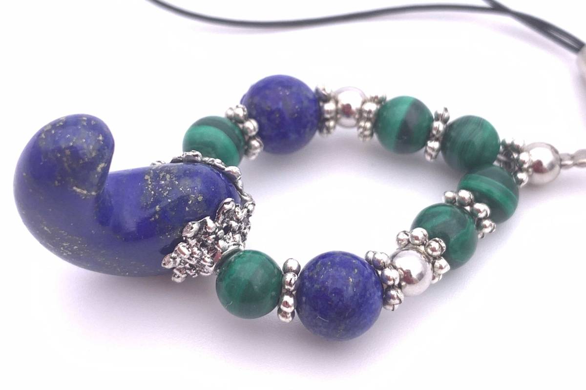 天然石ラピスラズリ勾玉&マラカイトのストラップ