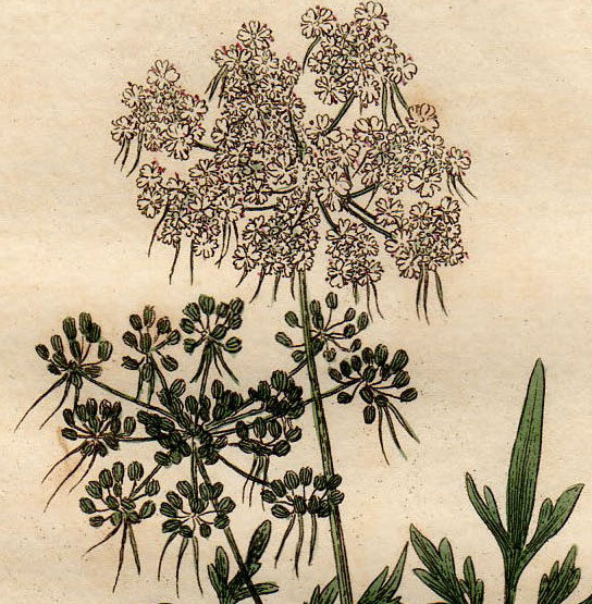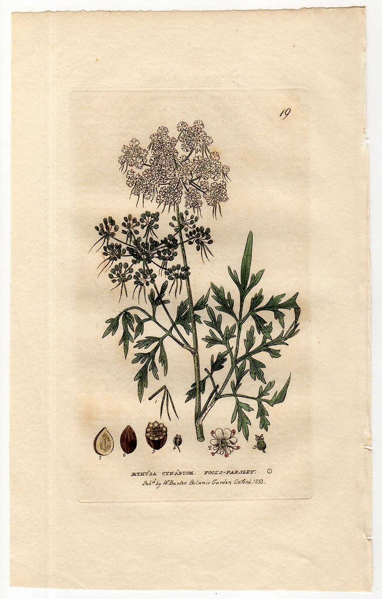 1834年 Baxter 手彩色 銅版画 Pl.19 セリ科 イヌニンジン属 AETHUSA CYNAPIUM