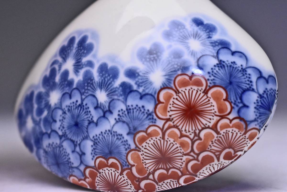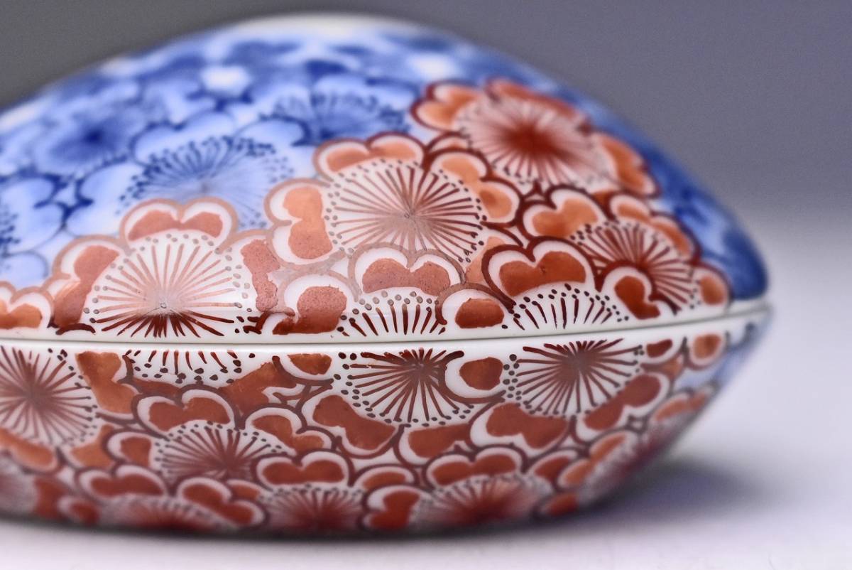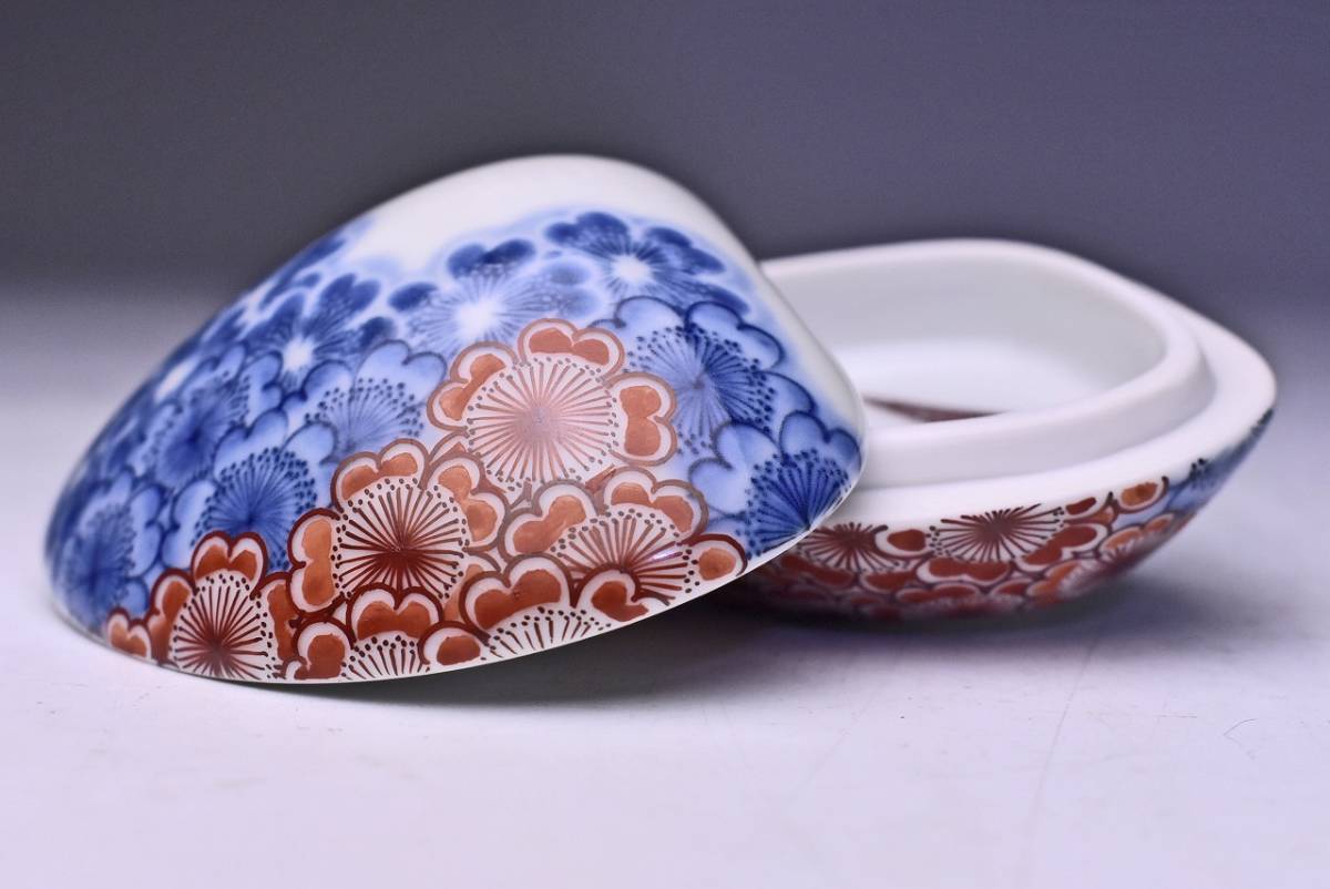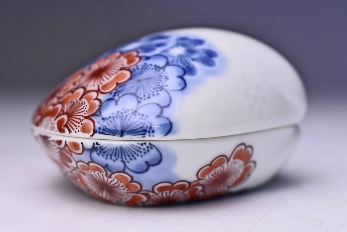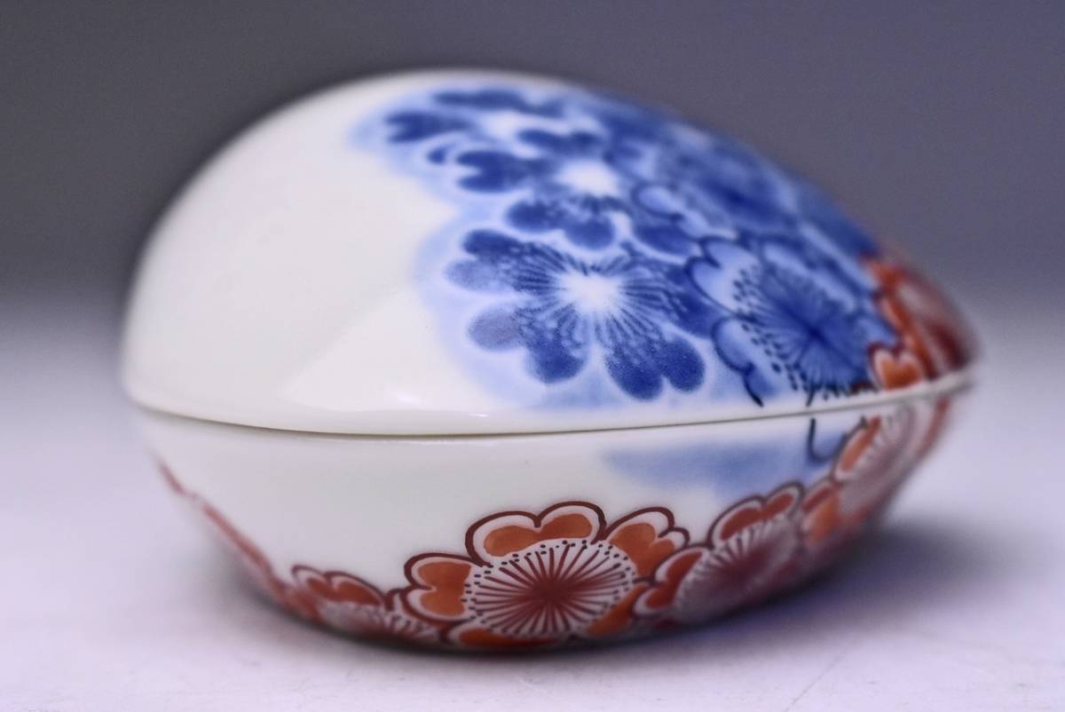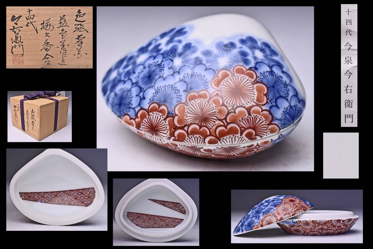 今泉今右衛門 14代 ★ 藍色墨はじき桜文香合 ★ 共箱図録 ★ 同手掲載 ★