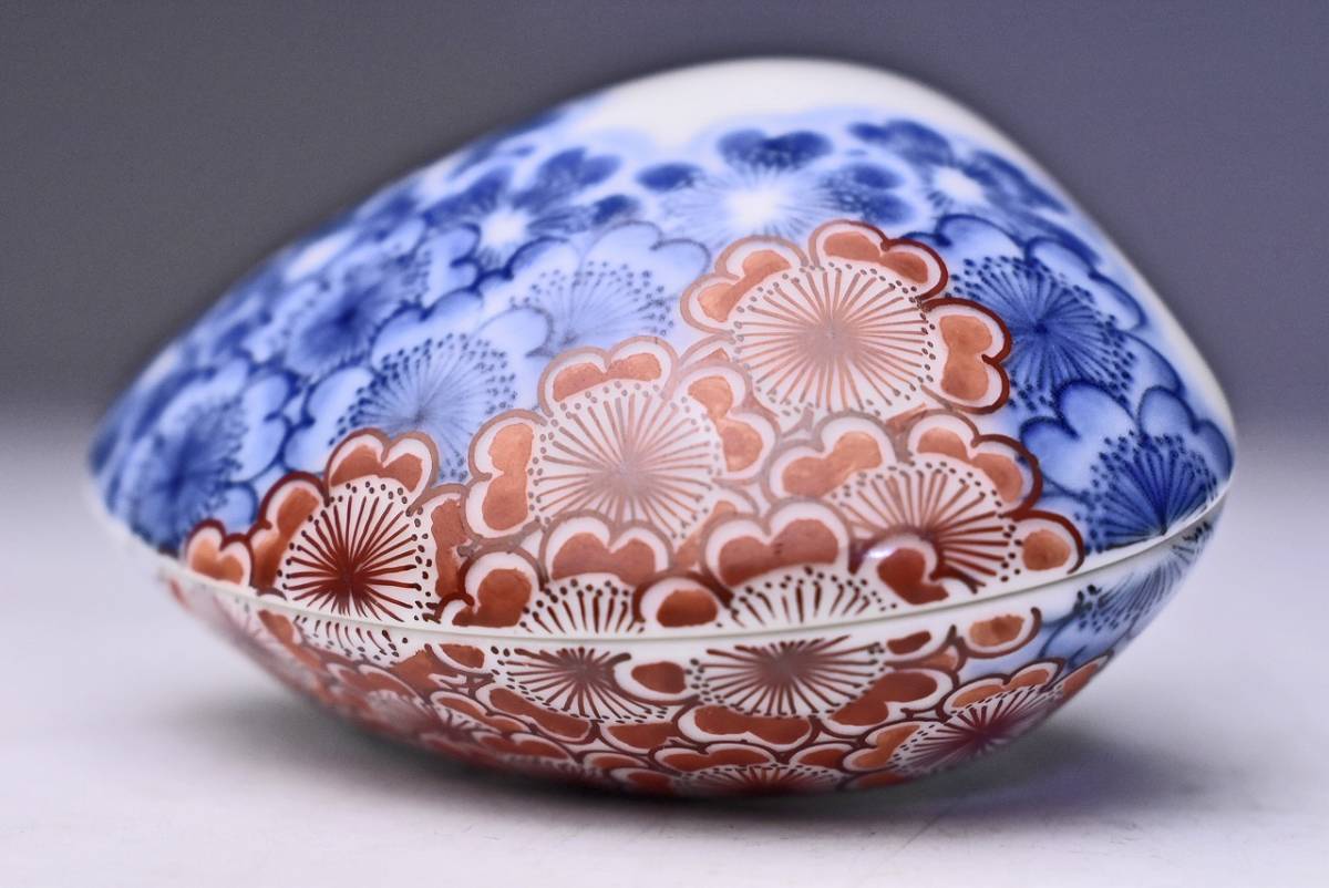 サイズは 82mmx66mmx高さ39mm です。 巨匠 14代 今泉今右衛門 氏の 作品です。 氏の 最上手 墨はじき の 意匠で 個展図録に 掲載されています。 掲載作 その物かは 解りません。 共箱・共布・栞 に 図録が 付属致します。 写真を参考の上 入札下さい。  宅配便60サイズにて 発送します。他にも多数出品してます。同梱対応いたします。 タイトルにある『検』とは 検索キーワードの 略称です。
