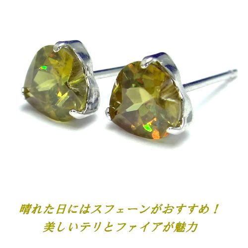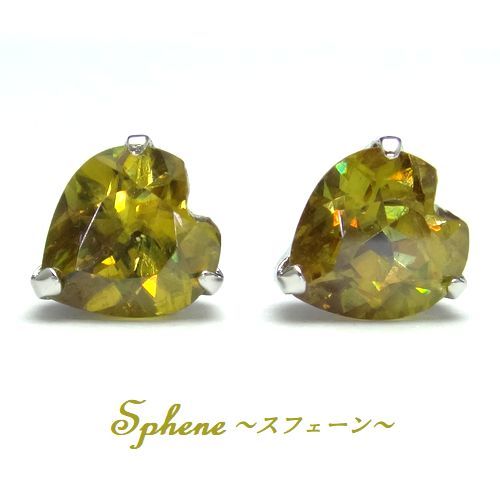 ハートのシェイプが女性の可愛らしさを引き出す天然スフェーン5ミリのスタッドピアスです。