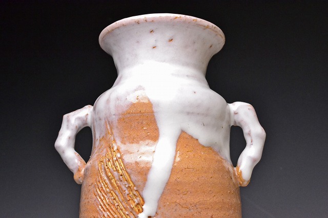 上質な見島土の土味と 透明釉、白釉が 迫力ある作品に仕上げています。