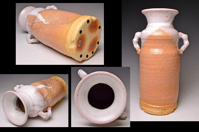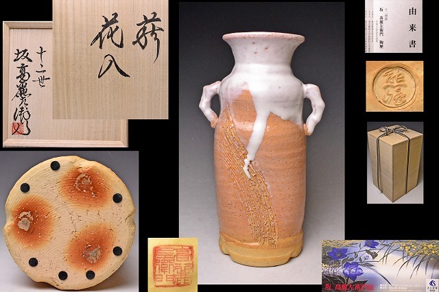 12代 坂高麗左衛門 ★ 萩 花入 ★ 共箱 共布 栞 DM ★ 釉景の美しい気品ある逸品 ★ 華道具 ★