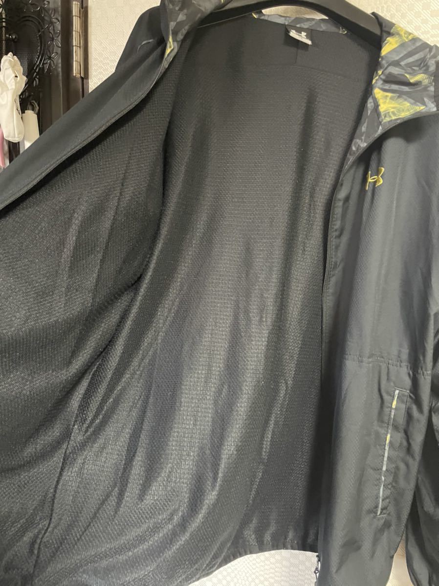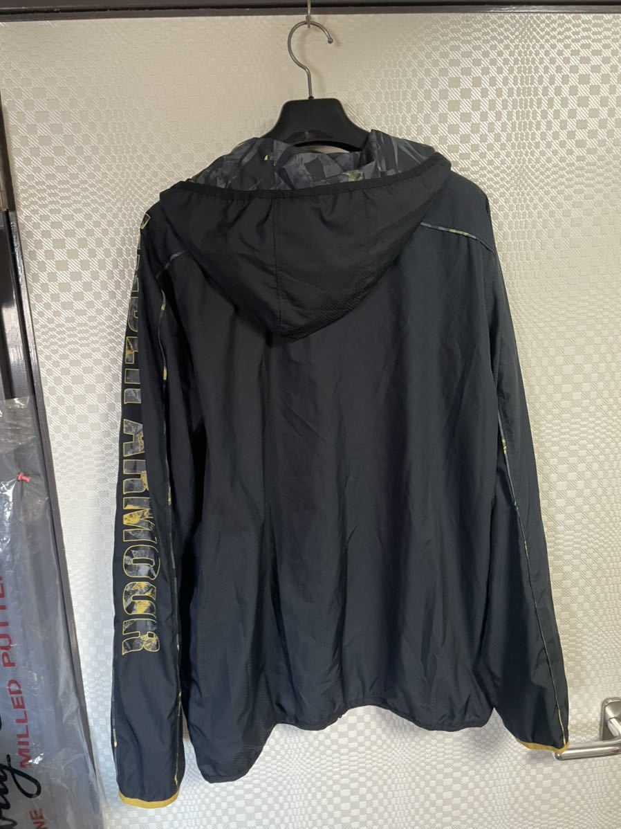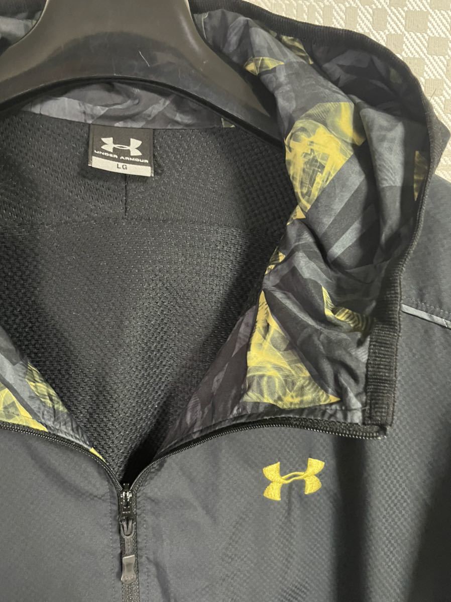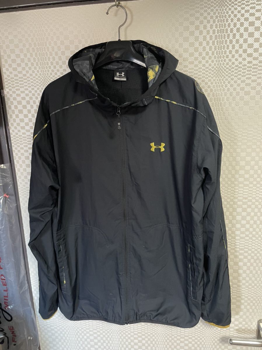 アンダーアーマー のウインドパーカージャケットです。サイズ L G表記で平置き脇下身幅58着丈70センチ位です。裏地付きなので暖かいですよ。