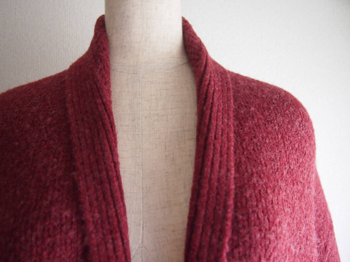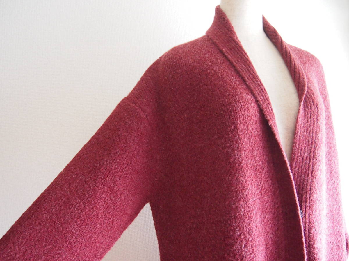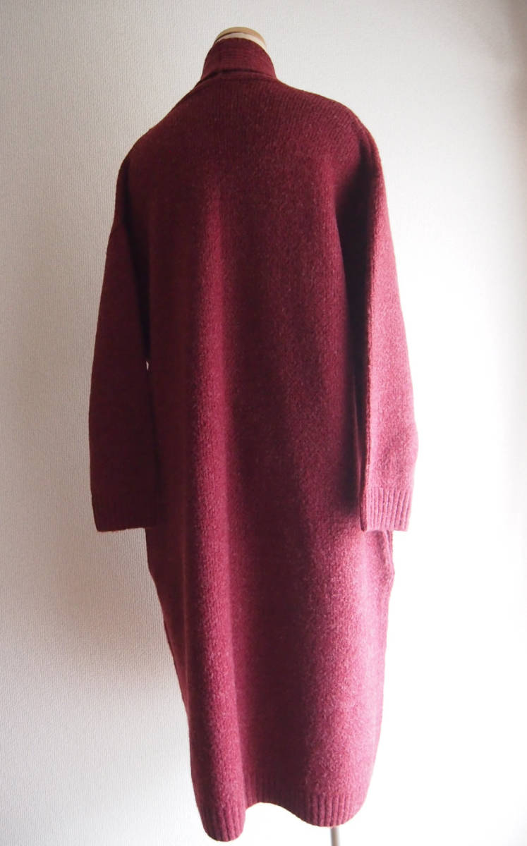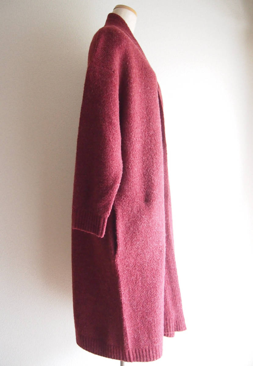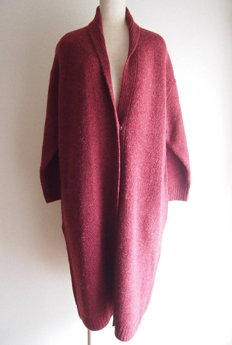 閉店セールr667 美品 cincuentacloseet ロングカーディガン ニットカーデ 長袖カーデ ボルドー レッド 赤 レンガ色 ガウンコート