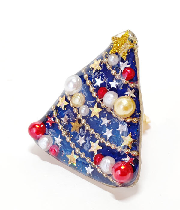 新品未使用 ☆ 帯留め D39 クリップ 冬 クリスマス ツリー 青台 帯飾り | |