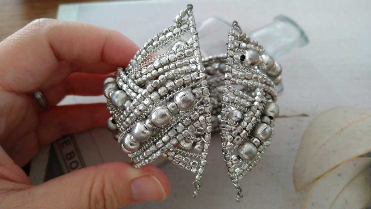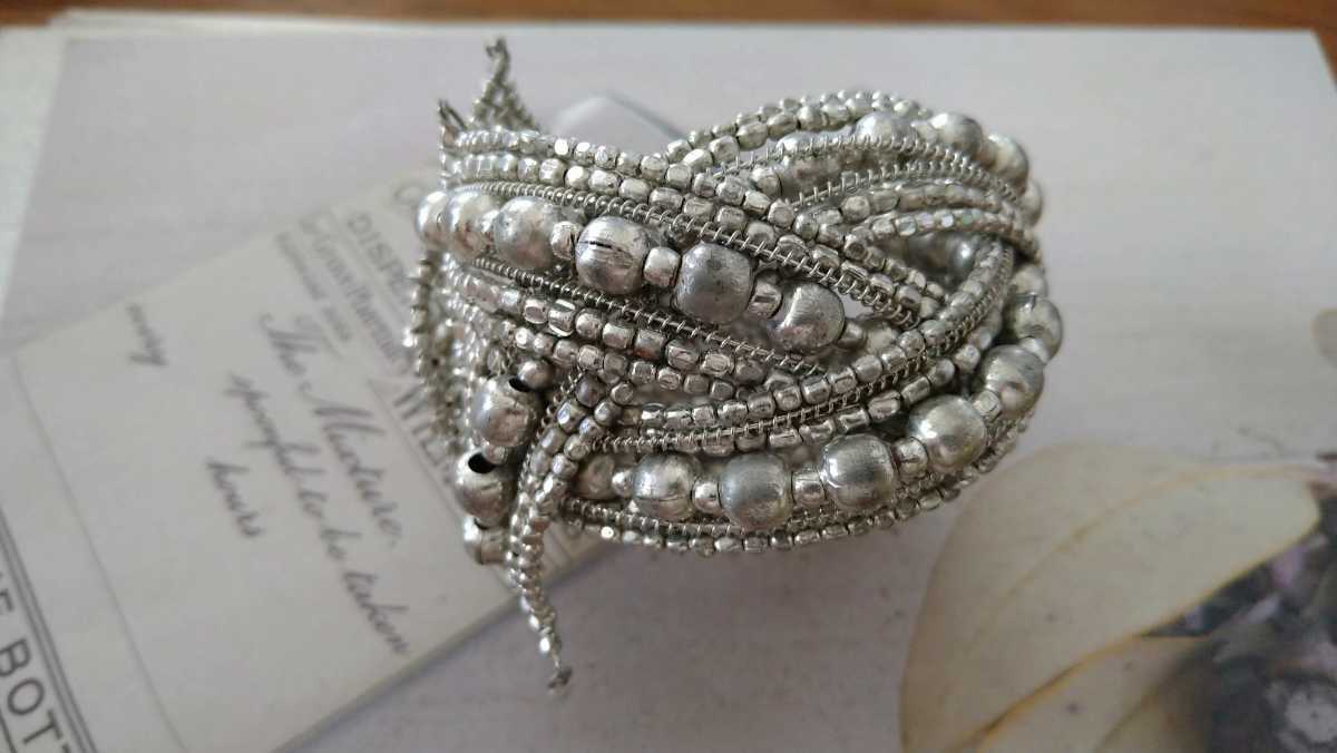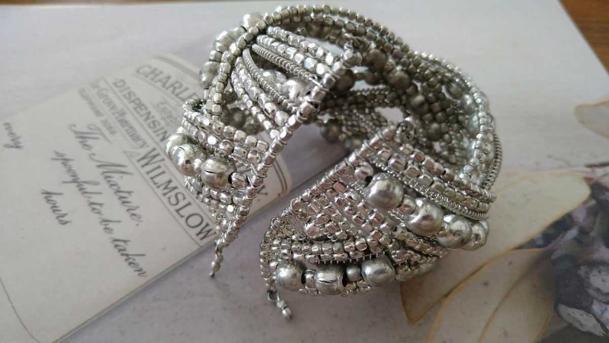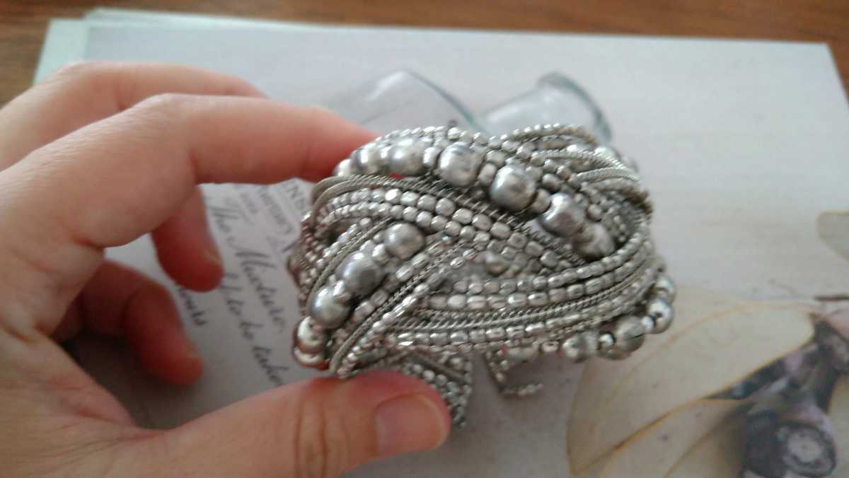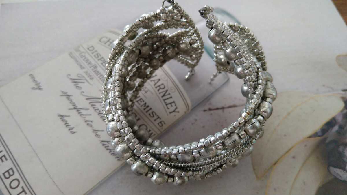 シルバーカラービーズのバングルです