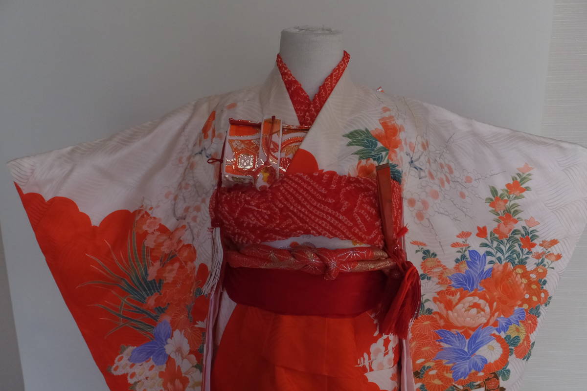 着物(正絹)・長襦袢(ポリエステル)・飾り帯・帯締め・帯揚げ(化繊)・