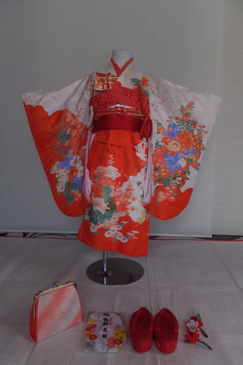 しごき(正絹)・お守り・末広・箱迫・バッグ・草履・つまみかんざし2Pの13点セットです。