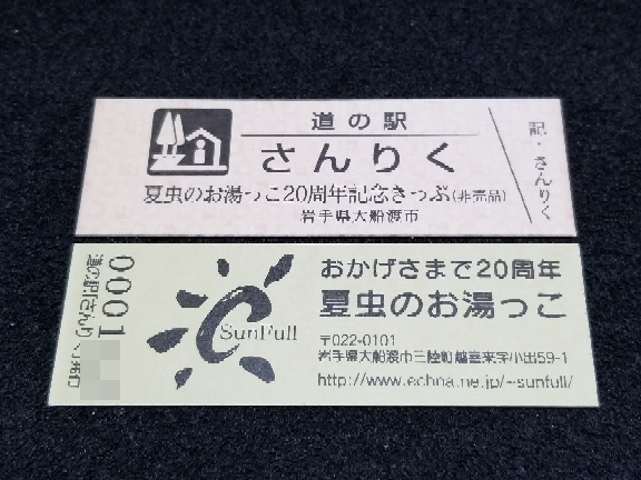 こちらの品は、道の駅/さんりく[岩手県]の特別券:夏虫のお湯っこ20周年記念きっぷ(非売品)です。