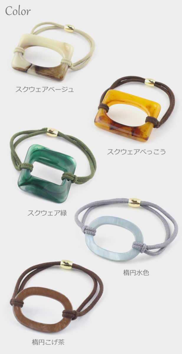 サイズ | スクウェア…モチーフ:3.8×2.7cm 正方形…モチーフ:1辺3.2cm 楕円…モチーフ:3.5×2.4cm ヘアゴム内径(共通):約4cm |