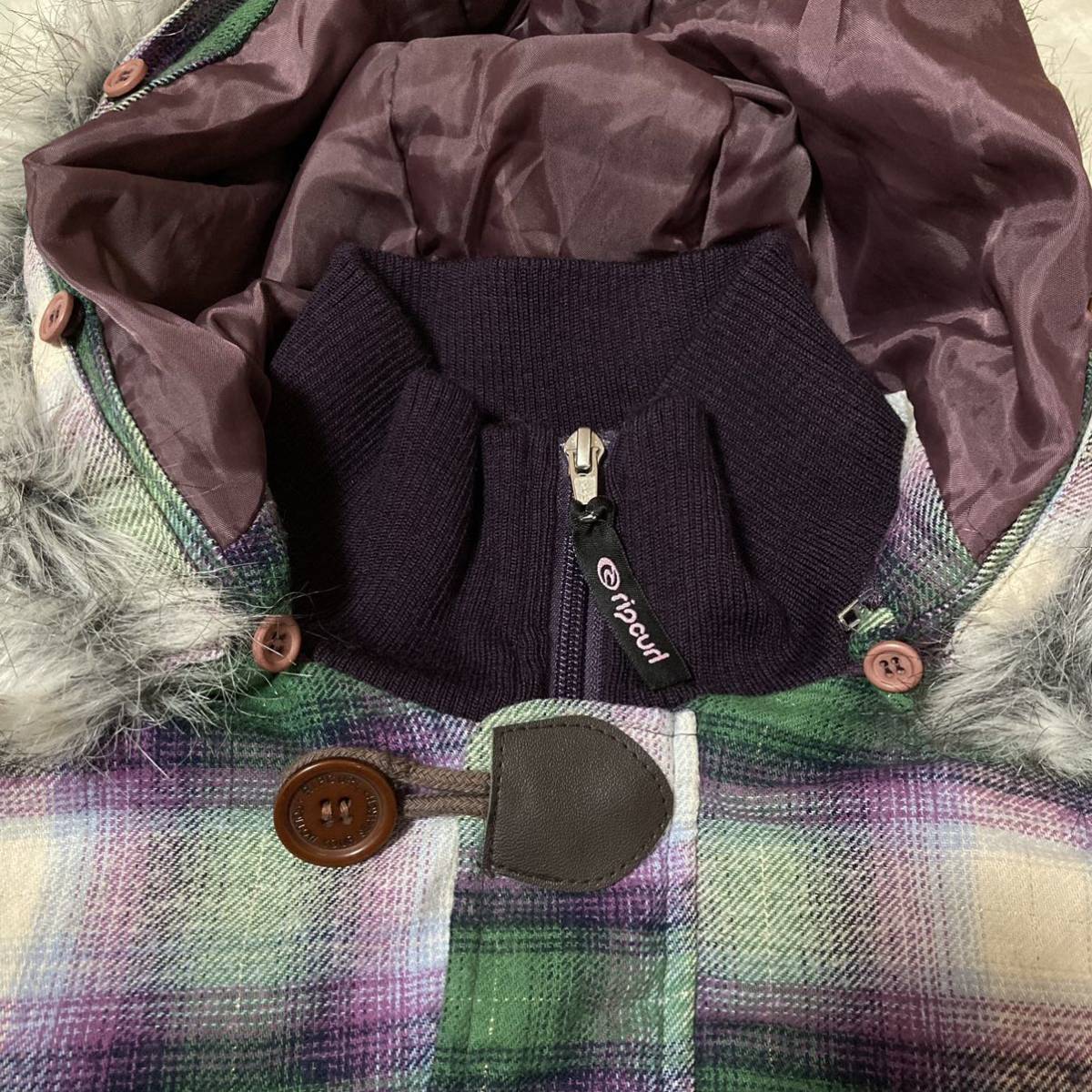 ファーはボタンで着脱、フードはファスナーで着脱可能で、前合わせはファフナーとボタンの二重です。