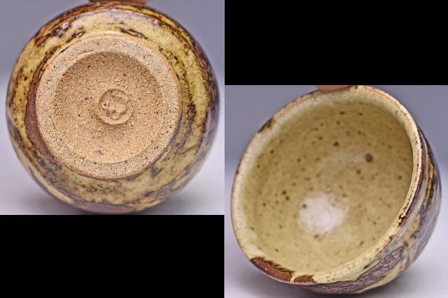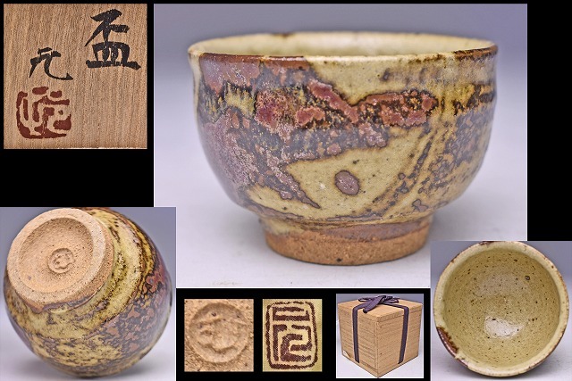 村田元 ★ 鉄絵 ぐい呑 ★ 共箱 共布 ★ 師: 人間国宝 浜田庄司 ★ 益子焼 民芸陶 ★ 検 村田浩