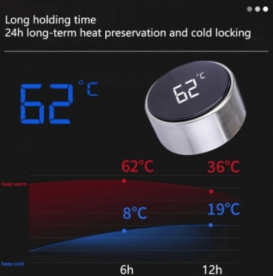 魔法瓶500ml, LED温度表示付き, 文字