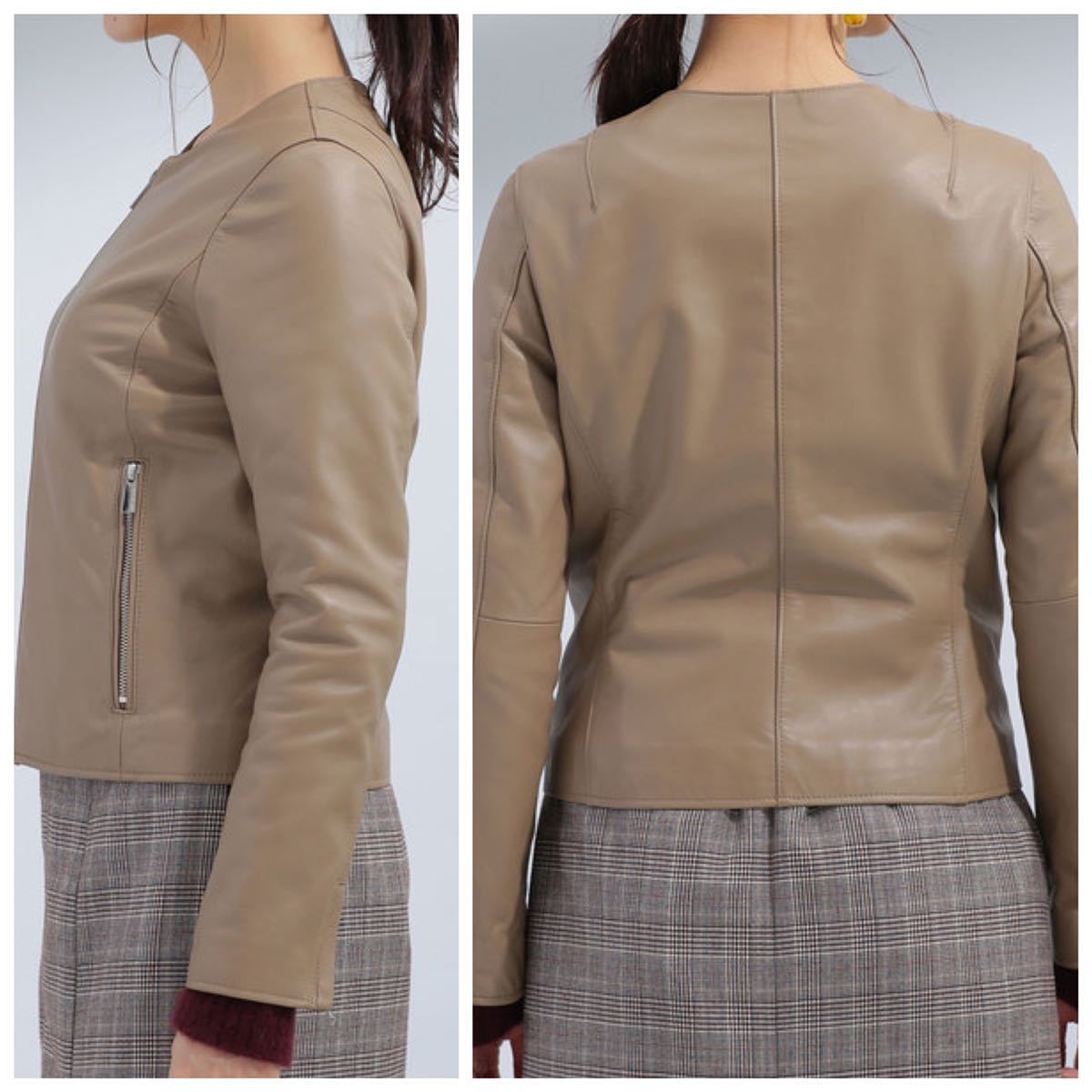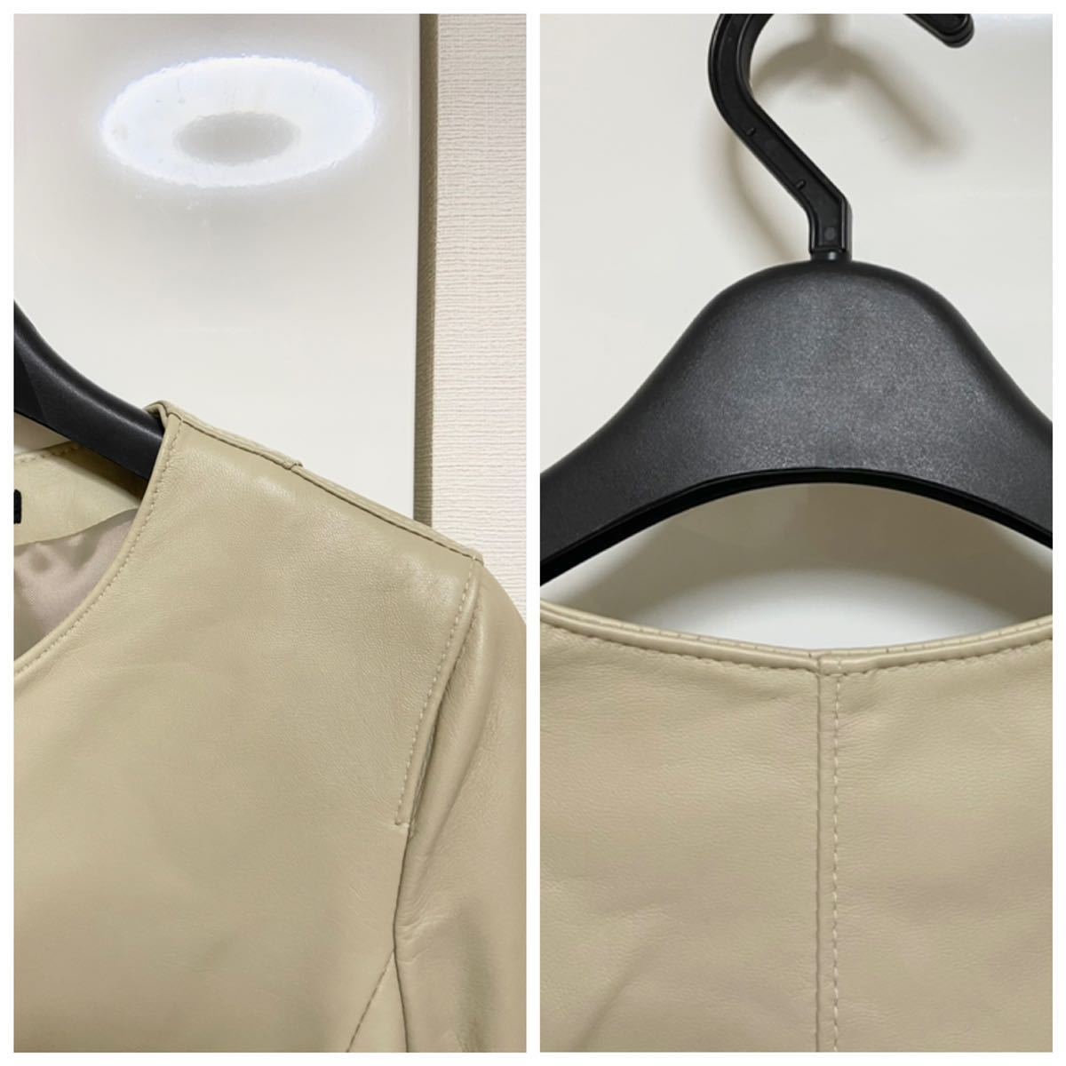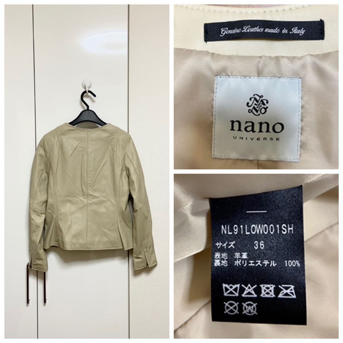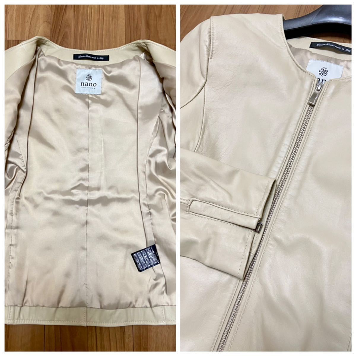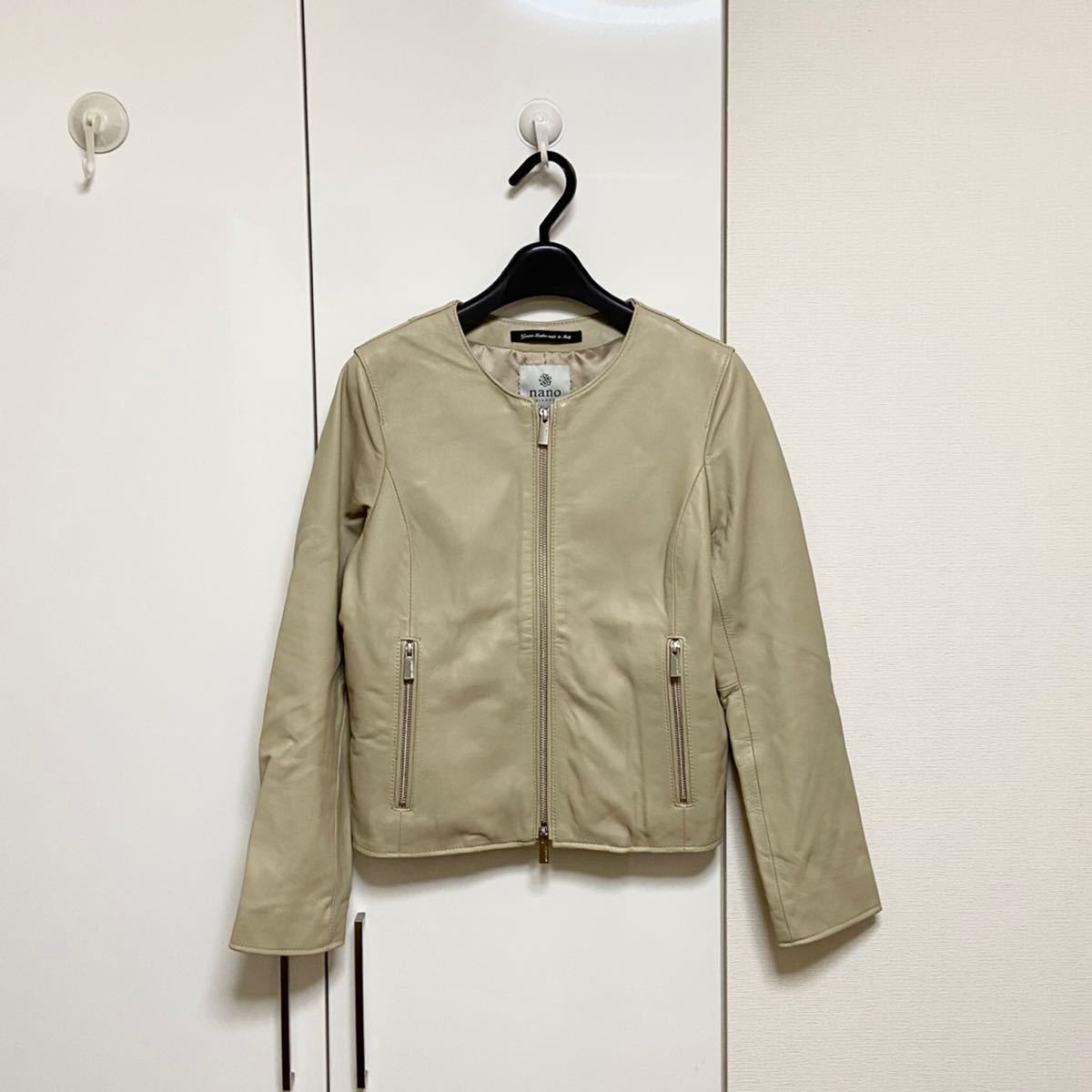 ナノユニバースのイタリアンラムレザーノーカラーブルゾン(シングルライダース)です。特筆する汚れやダメージはありません。