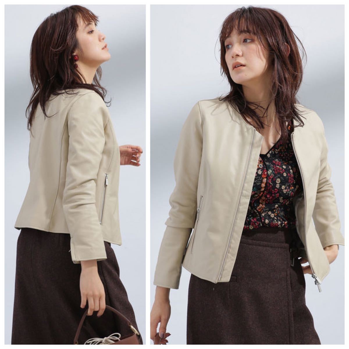 さらっと羽織るだけで着こなしが引き締まるレザーブルゾンはミルキーカラーが正解!