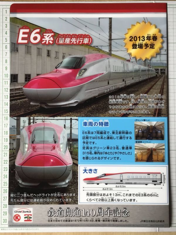 鉄道開通140周年記念 E6系 量産先行車 サークルK クリアファイル (7402-3)