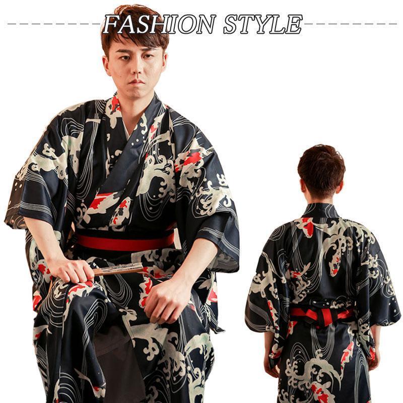 メンズ 浴衣 和服 和装 単衣着物 すぐに使える 涼しい ブルー 波柄
