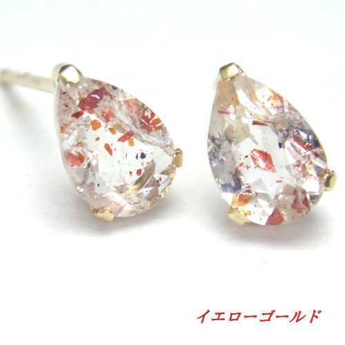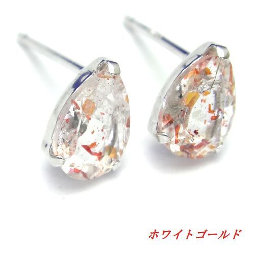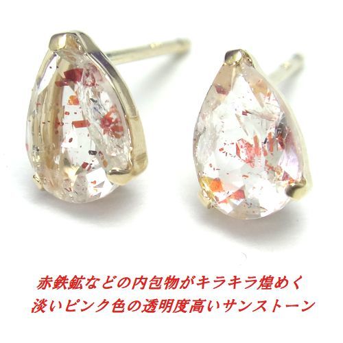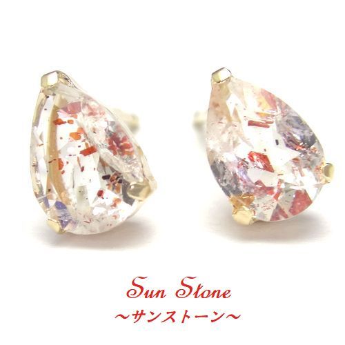 K10 サンストーン ペアシェイプ ピアス WG YG 10金 選べるゴールド ジュエリー 天然石 スタッド 6x4 箱付き