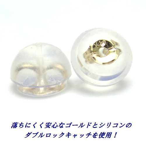 キャッチは、ゴールドとシリコンのダブルキャッチになっているので、落ちにくく安心してお使い頂けます。